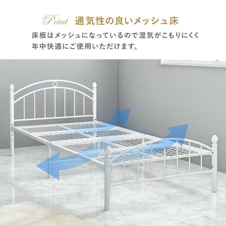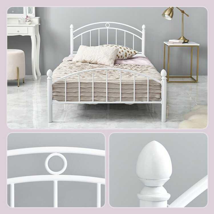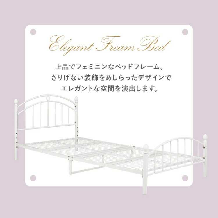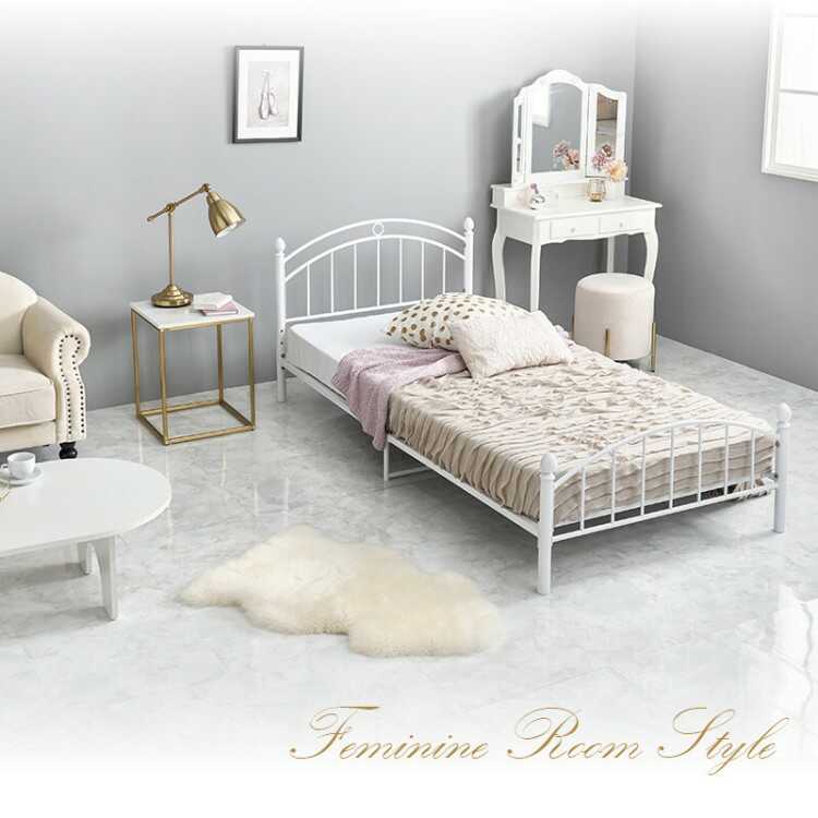 派手過ぎない上品でフェミニンな装飾が可愛らしいシングルサイズのパイプベッド。