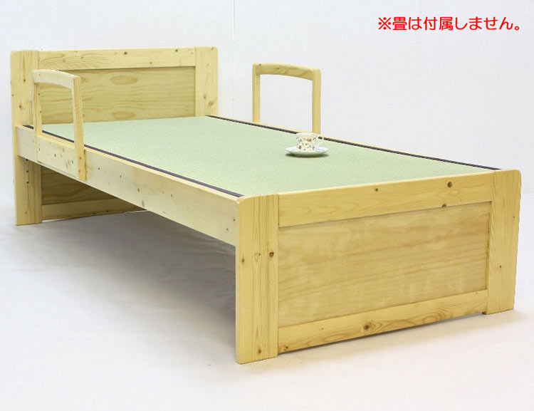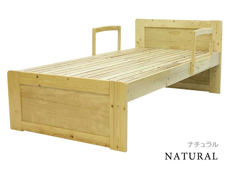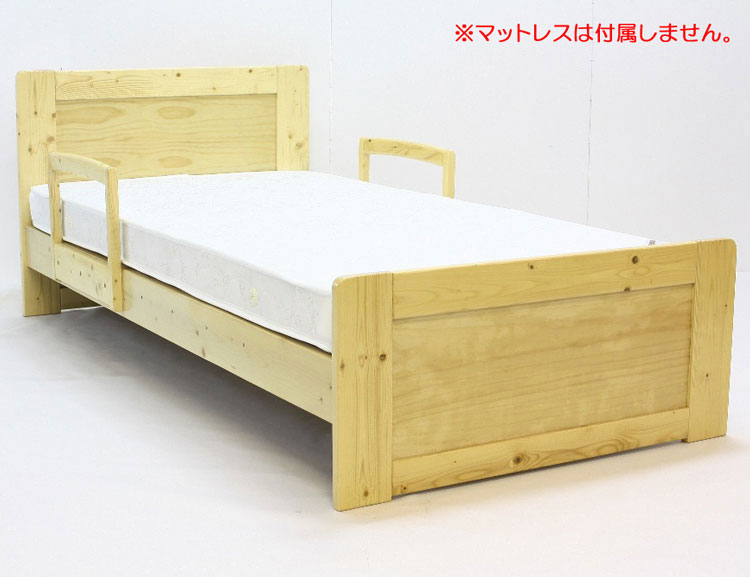 天然木パイン材を使用したシンプルなデザインのシングルベッド。