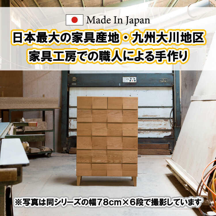 日本最大の家具産地「九州」にある収納系家具を得意とするメーカーによる日本製と確かな品質で長くご愛用いただけます。