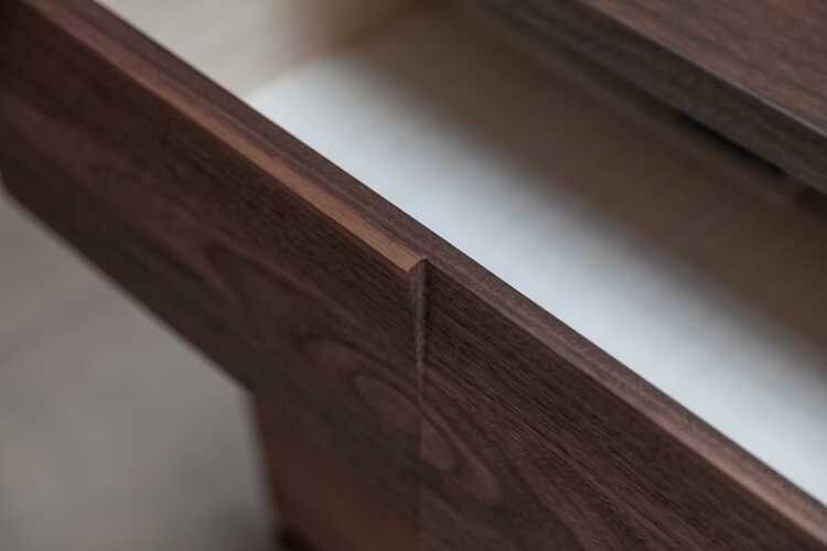 よく目に付く前板などの表面材は天然木ウォールナット無垢材を使用した豪華な仕上がり。