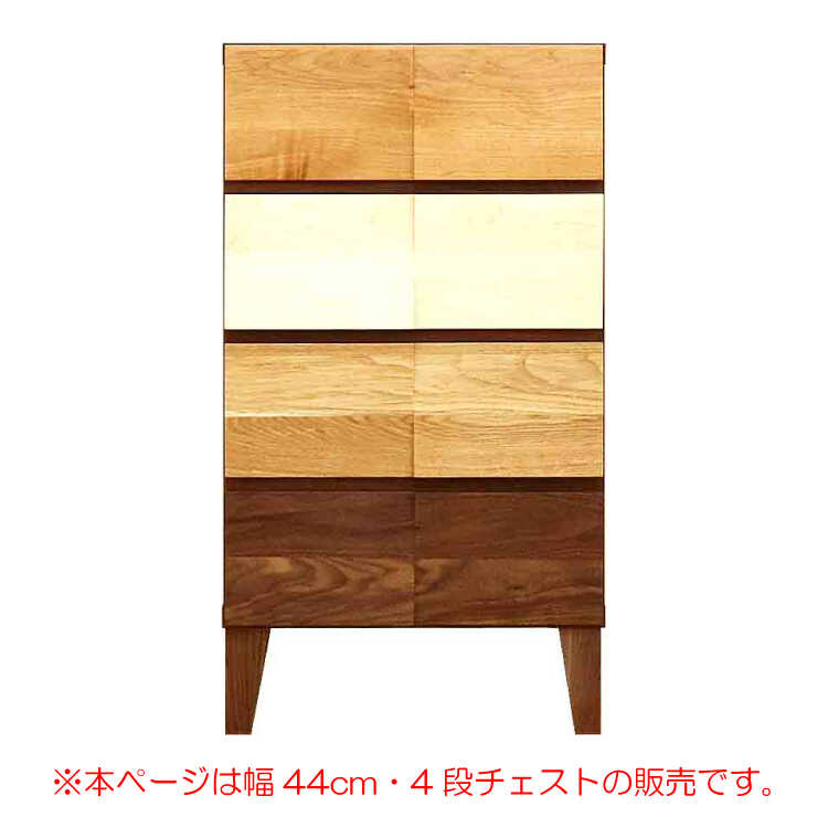 幅44cm・スタイリッシュチェスト4段(4種類の高級天然木で作られた国産・完成品)