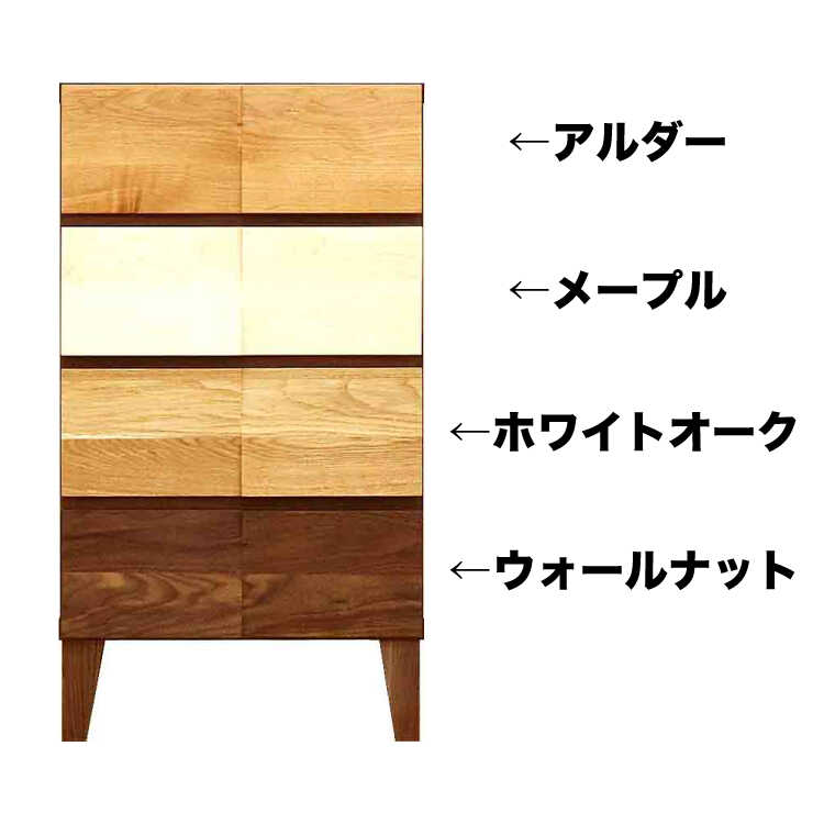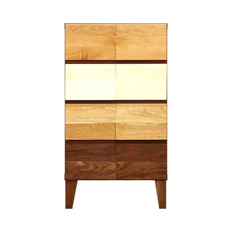 単色のチェストではシンプルすぎる…そんな方におすすめの4種の天然木を使用したスタイリッシュチェスト。