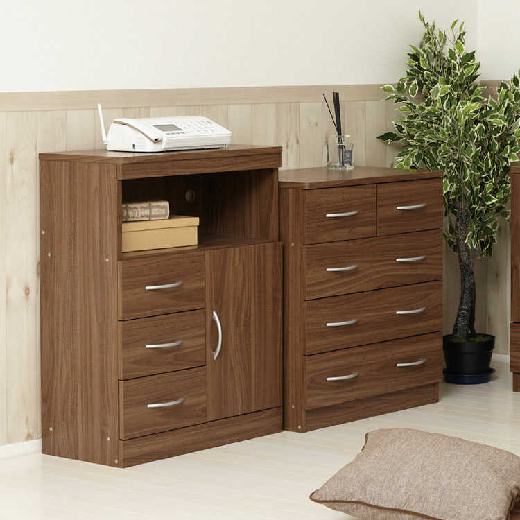一人暮らしの方にもおすすめ!コンパクトで安いウォールナット柄の衣類チェスト。