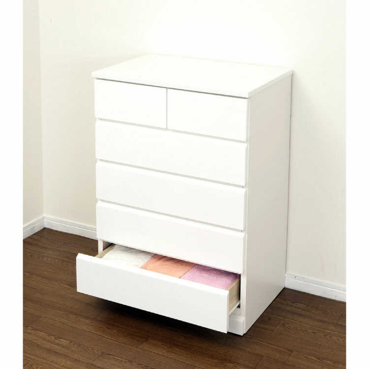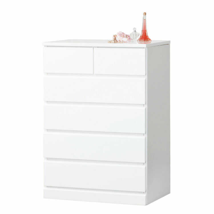 幅60cm・白鏡面ハイチェスト5段(完成品/光沢ホワイト)