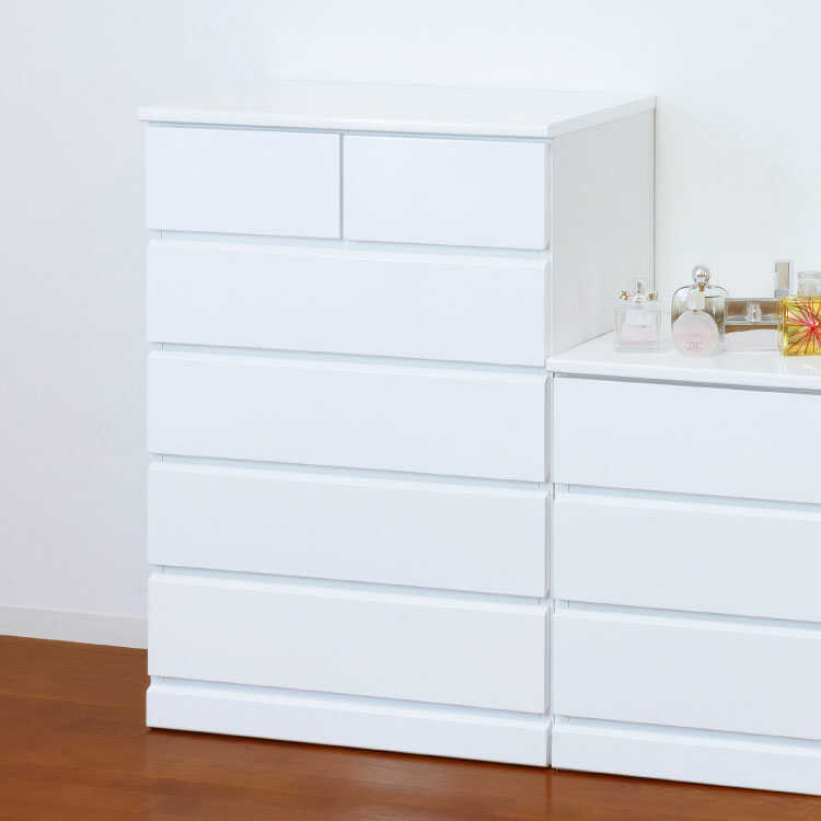 白鏡面ハイチェスト5段ならインテリアル