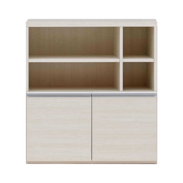 取っ手は強度に優れているアルミ製を使用し、本体の木目柄のホワイトと調和し、爽やかな空間を演出してくれます。