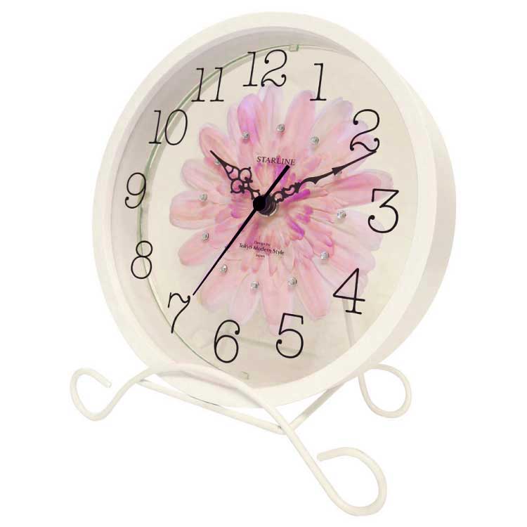 CL-2134 置き時計ピンクのお花デザイン(掛け時計としても使える!)