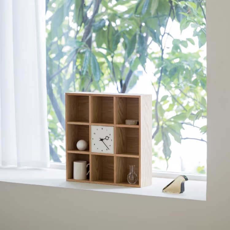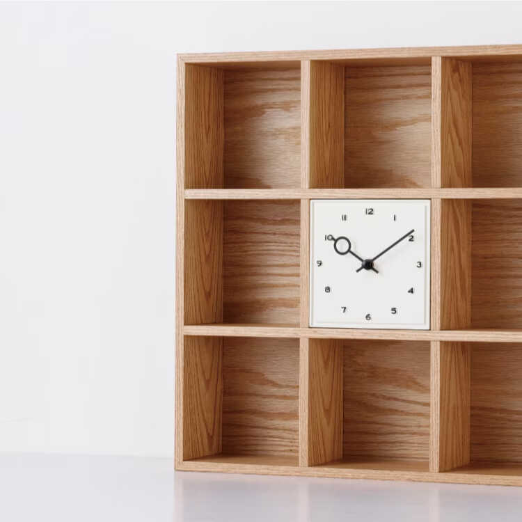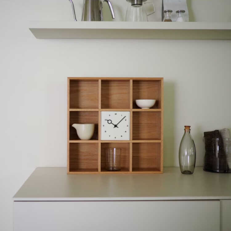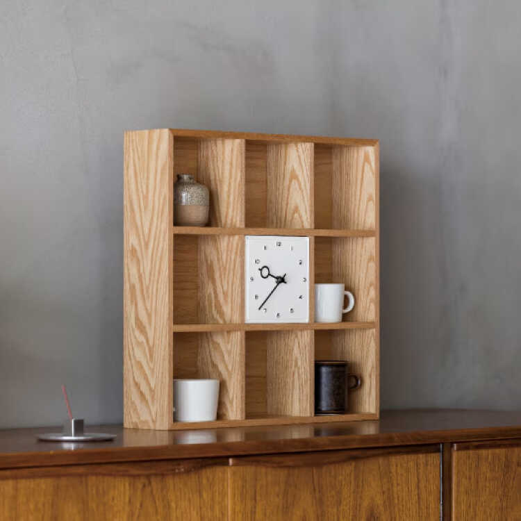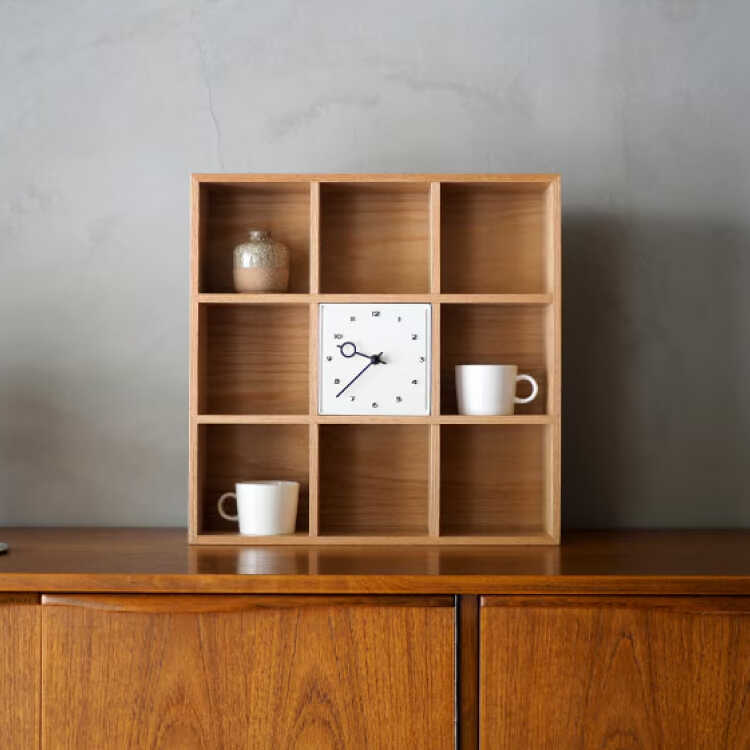 卓上のミニ収納シェルフと時計が一つになったような、ファニチャー感の高いテーブルクロック。