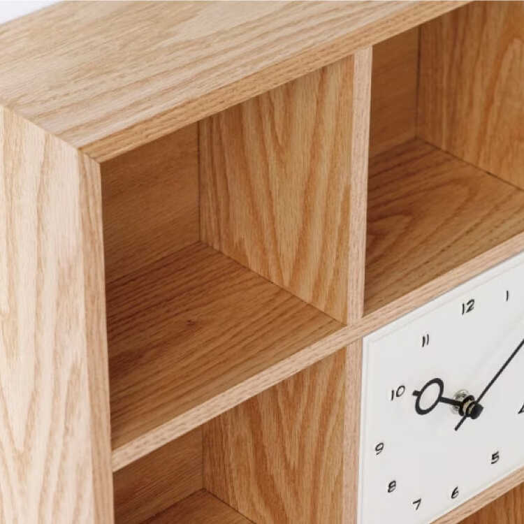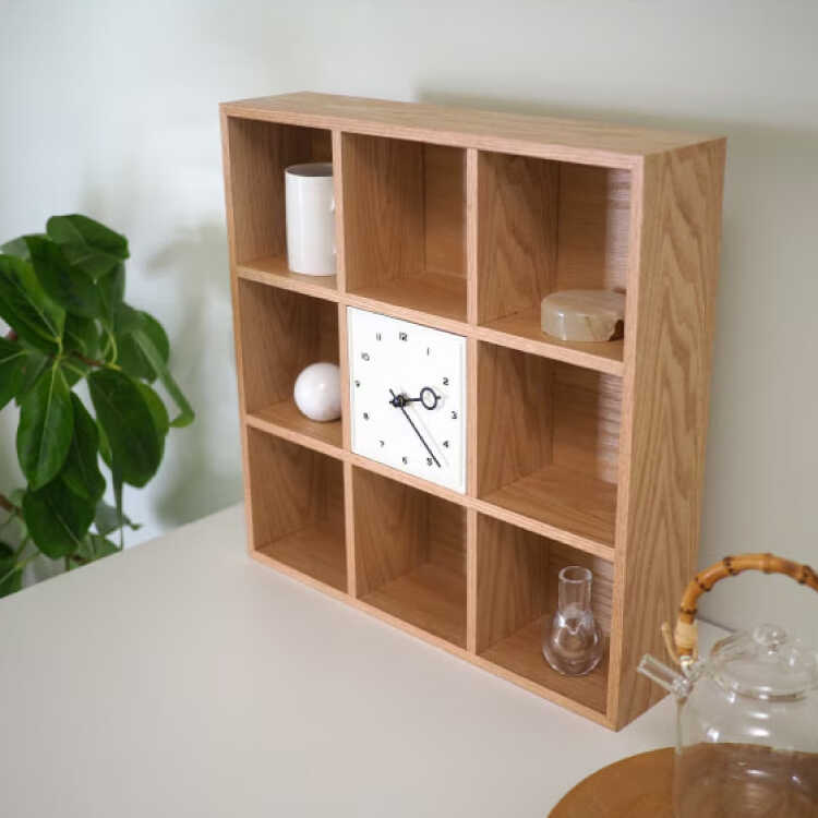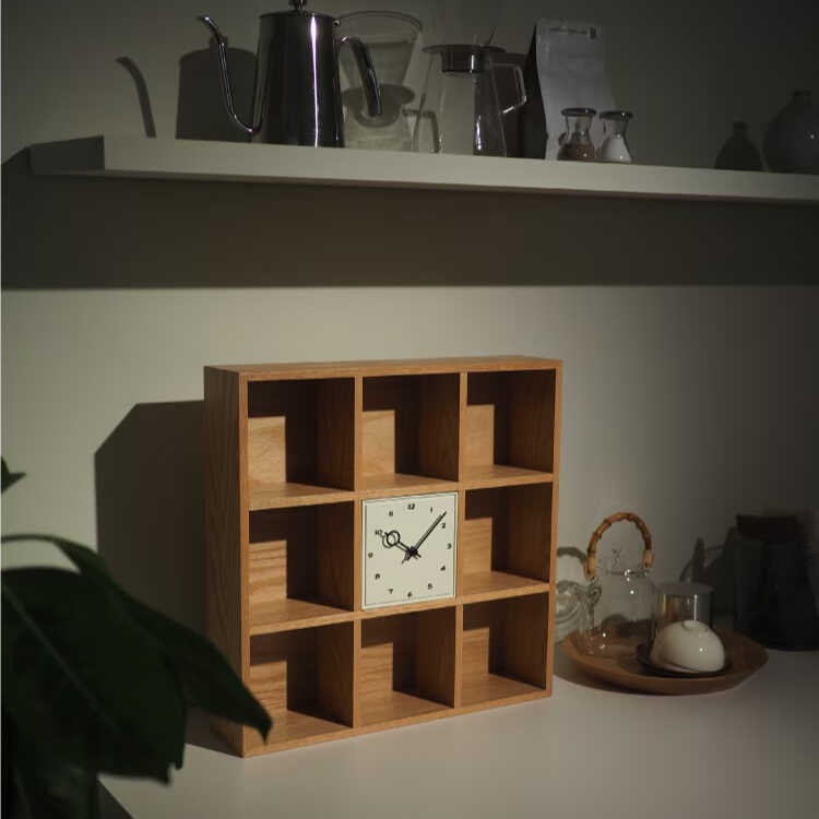 天然木オーク製・ミニシェルフなテーブルクロック(卓上時計・静かなスイープムーブメント)