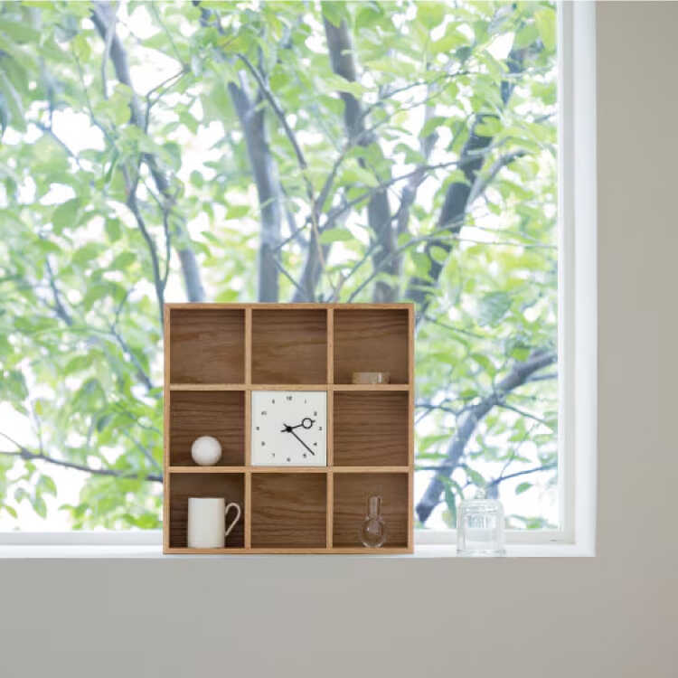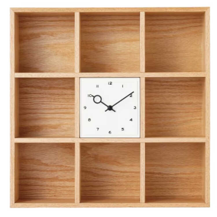 タテヨコ約42cmを9つのブロックに区切ったデザインで、中央に文字盤を配しました。