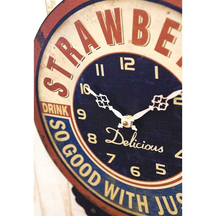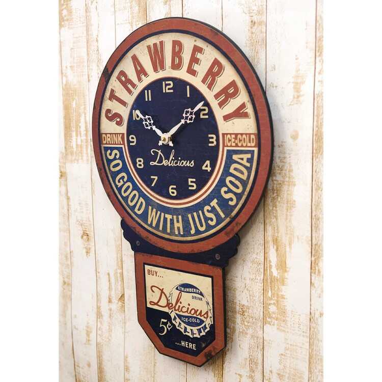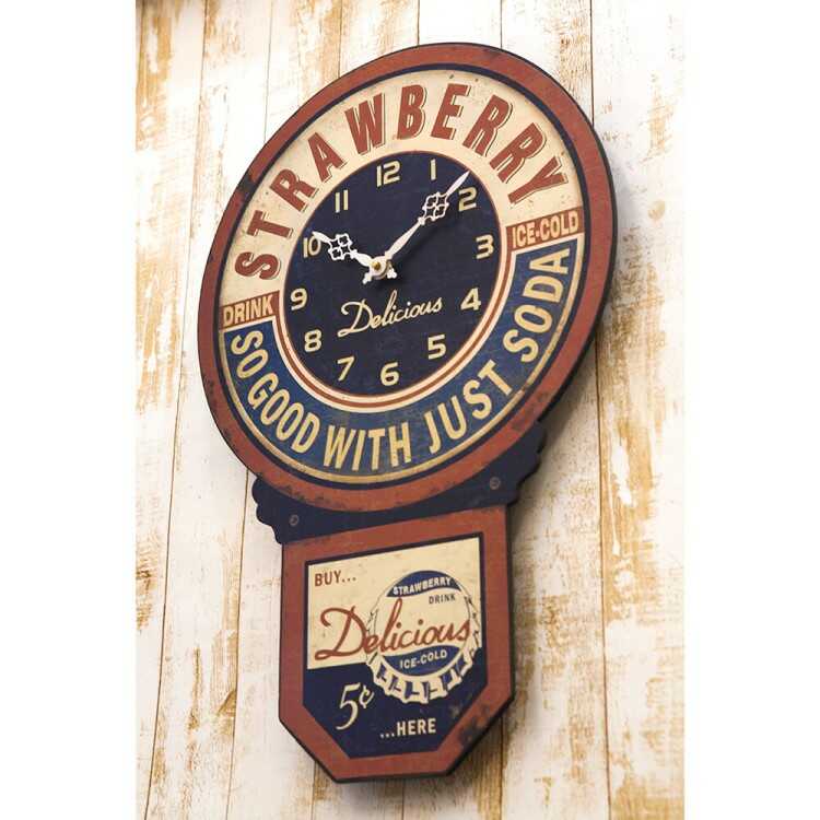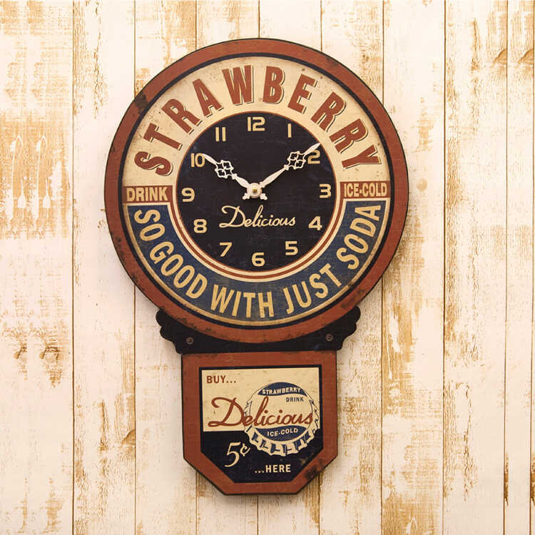 昔懐かしいボンボン音がでる振り子時計のようなフォルムに、アメリカのカフェを連想させる英字デザインがお洒落な雰囲気。