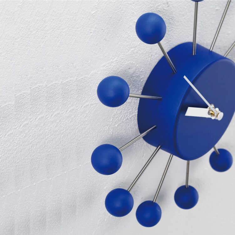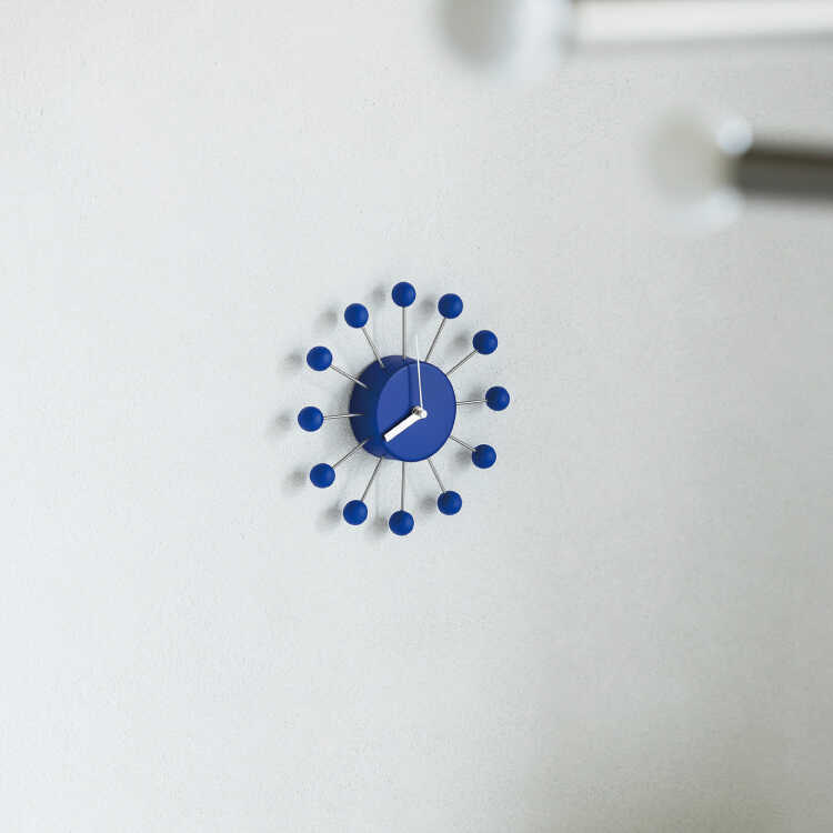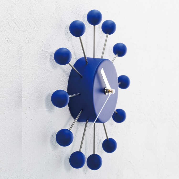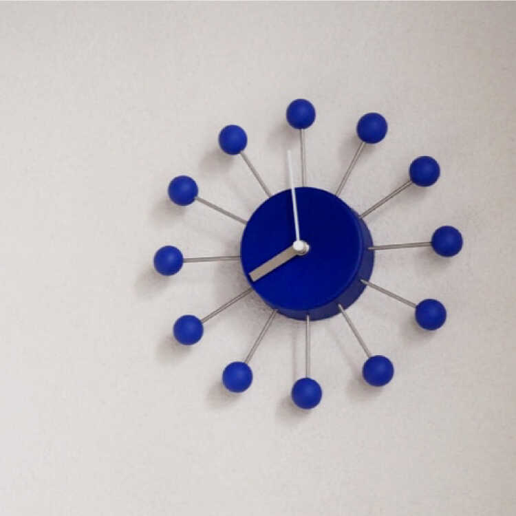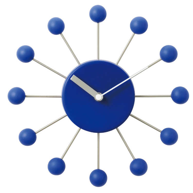 ミッドセンチュリー風ボールデザイン壁掛け時計(青ブルー・静かな連続秒針)