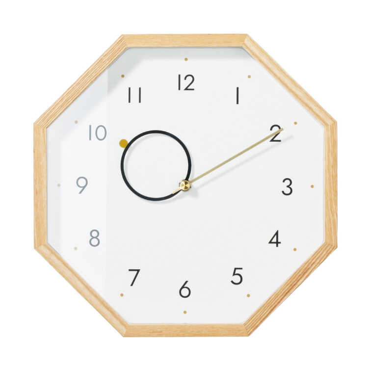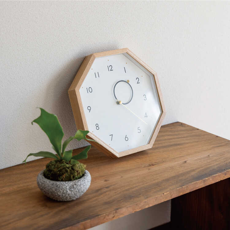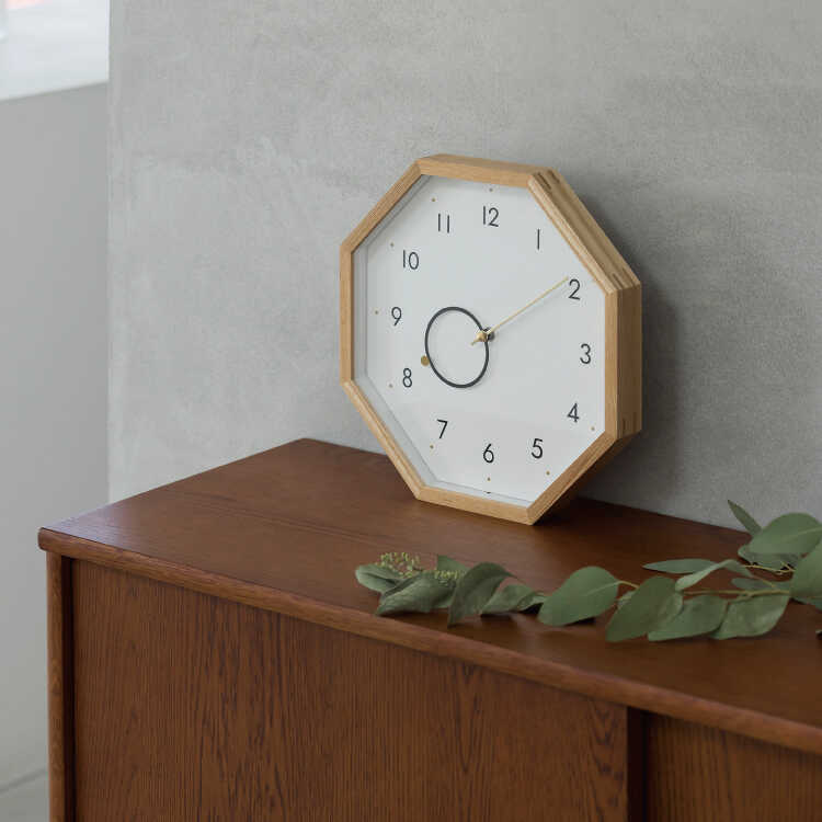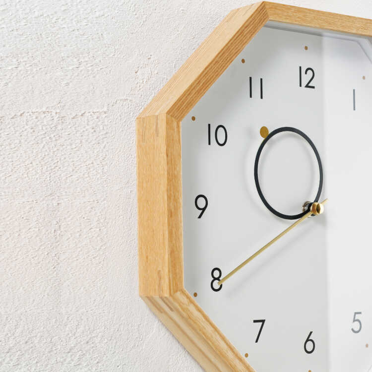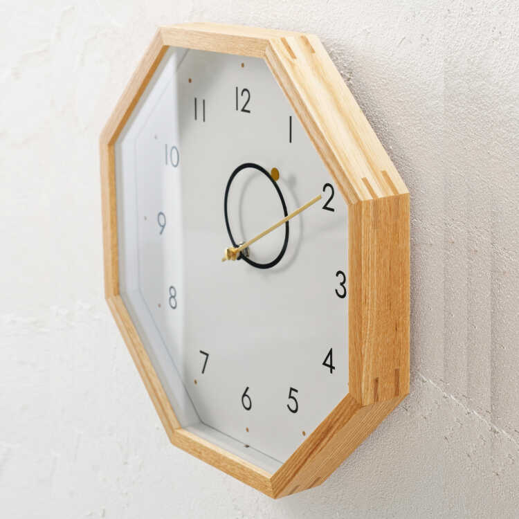 幸運を呼ぶ八角形の壁掛け時計(天然木製・静音スイープムーブメント)