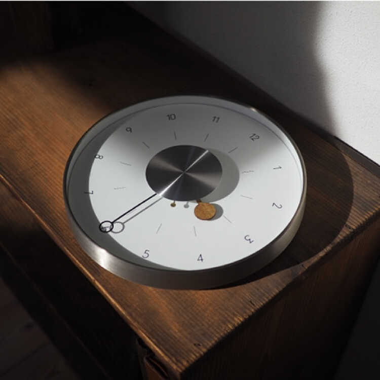 形状・色・位置・速度が異なる3つの丸いアクセントはリズミカルに時を刻んでくれます。