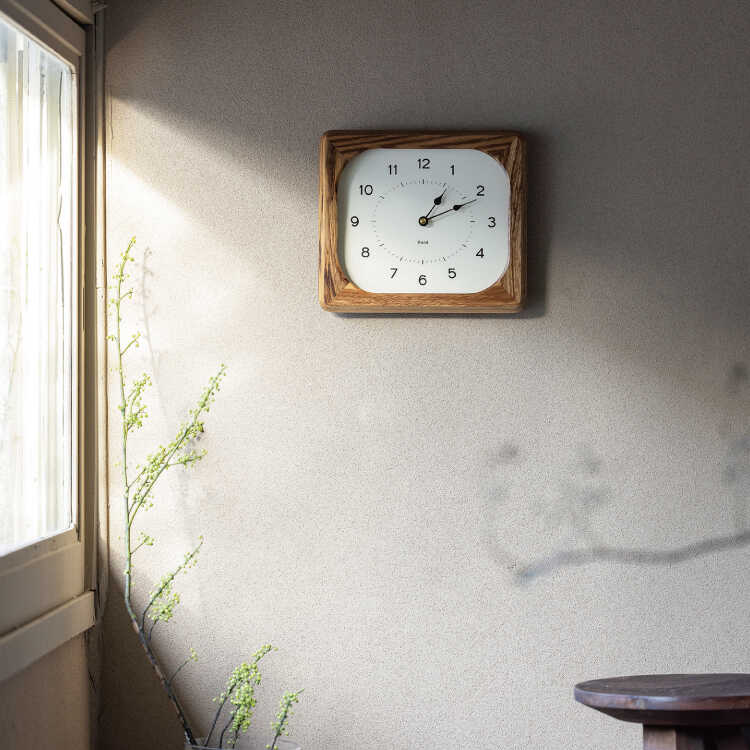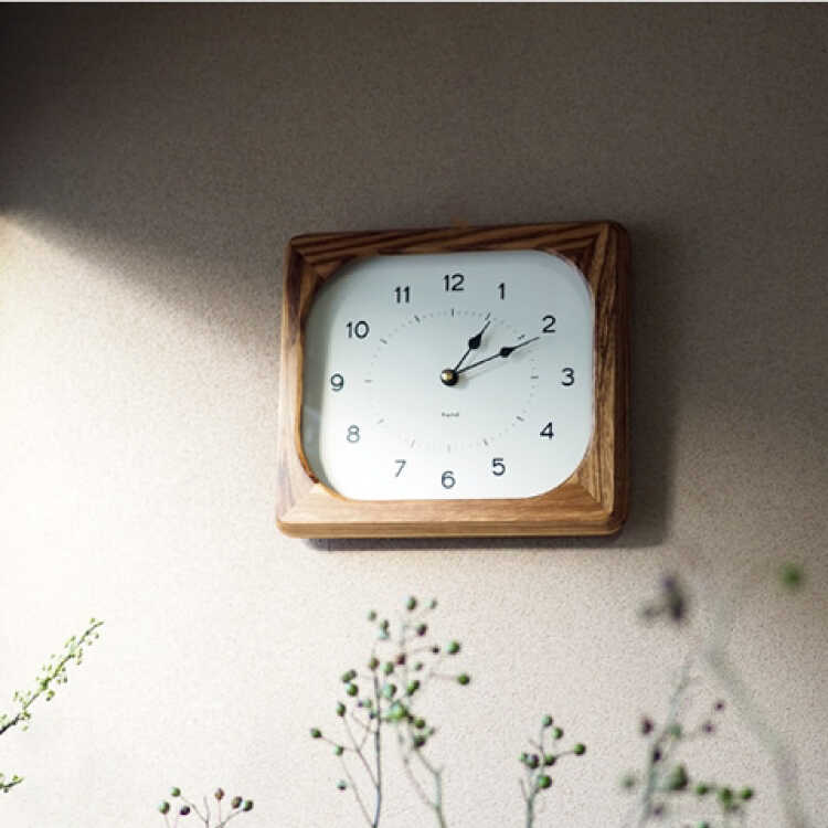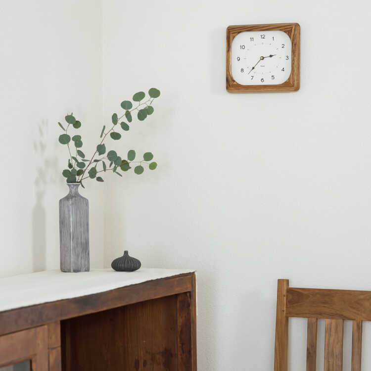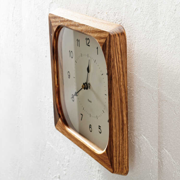 天然木の豪快で美しい木目が高級感溢れる四角形の壁掛け時計。