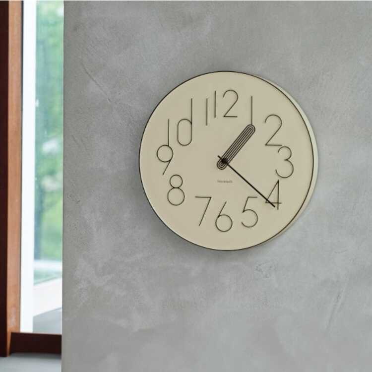 モダンアートなウォールクロック(ベージュ色・無音スイープムーブメント)
