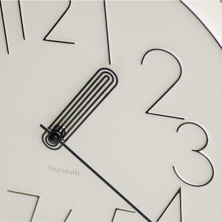 くっきりとしたフォントの数字、枠のアウトラインで効いたコントラスト、少しだけ遊び心を出したデザインフルな短針…センスの良さを取り入れた芸術性の高い時計です。