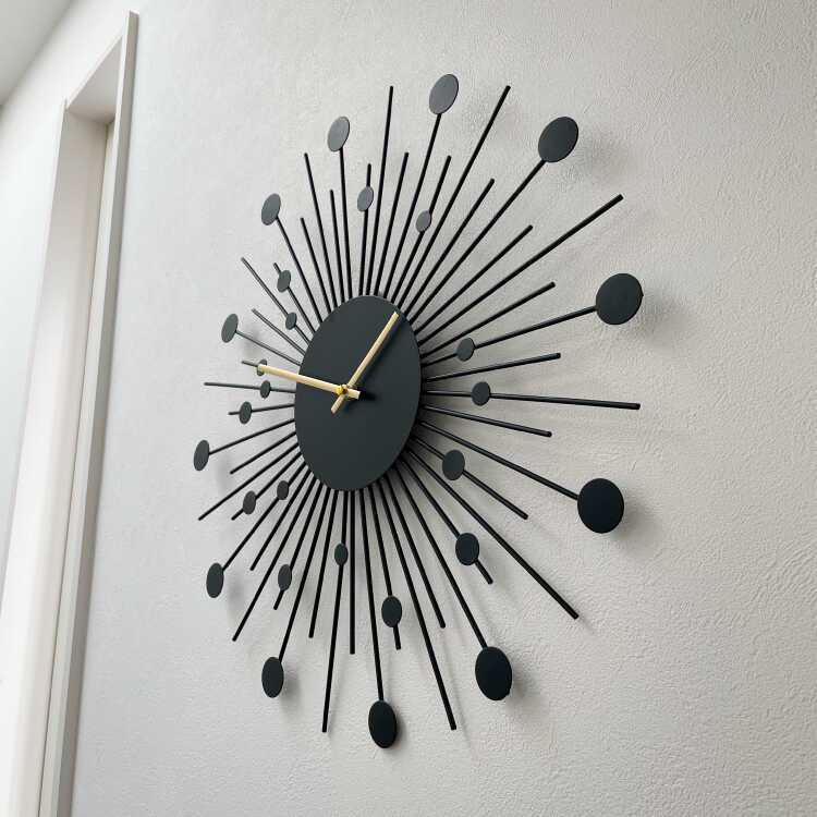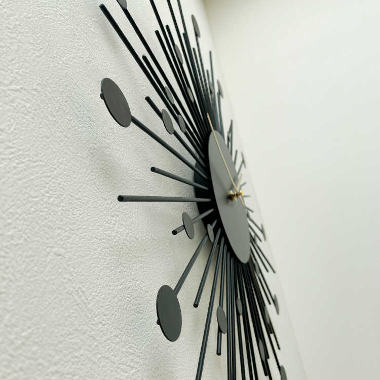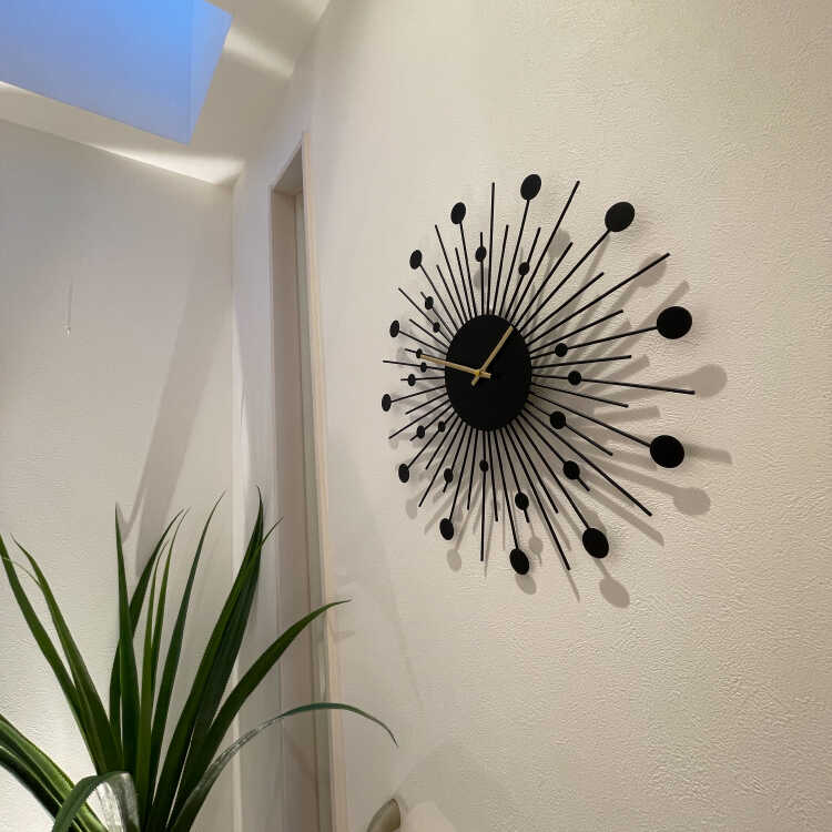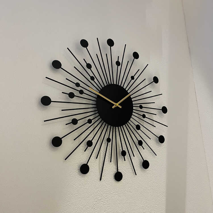 個性的な黒のフォルムが白い壁に映えまくる壁掛け時計。