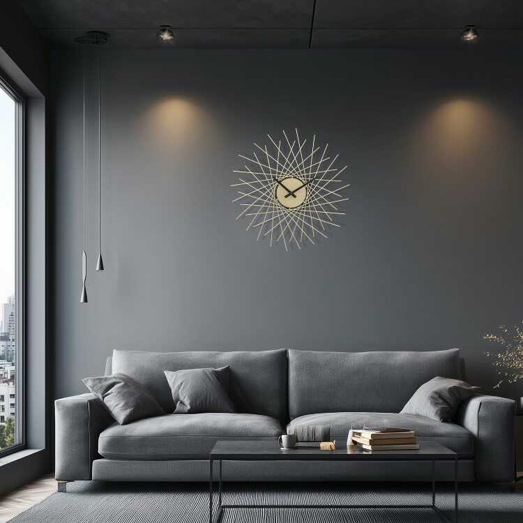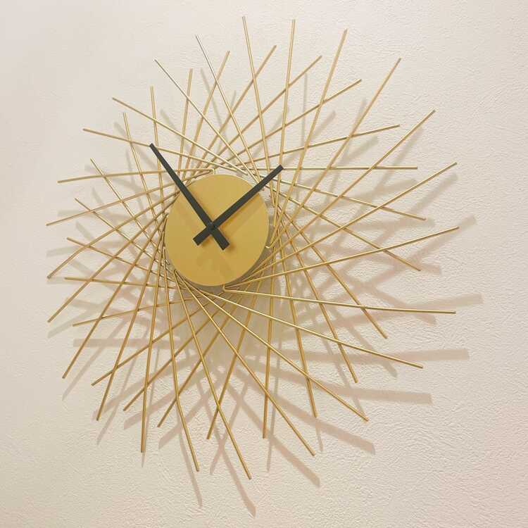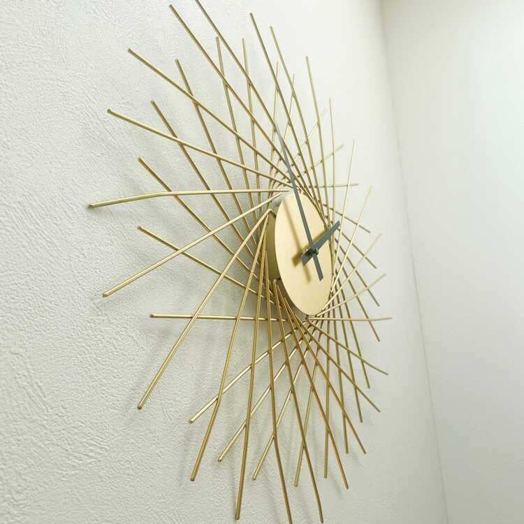 ゴールドの立体的デザインの壁掛け時計(サイレントムーブメント)