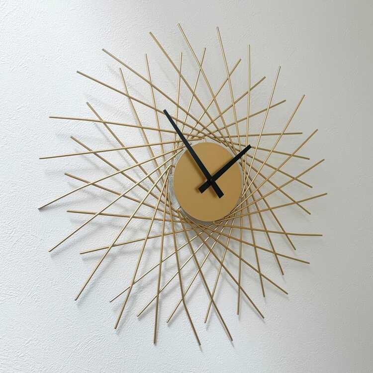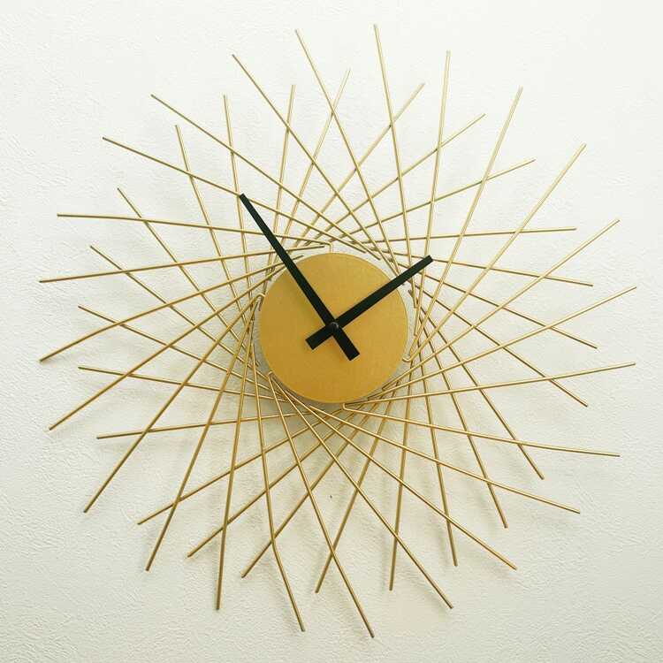 立体感のあるゴールド色の壁掛け時計