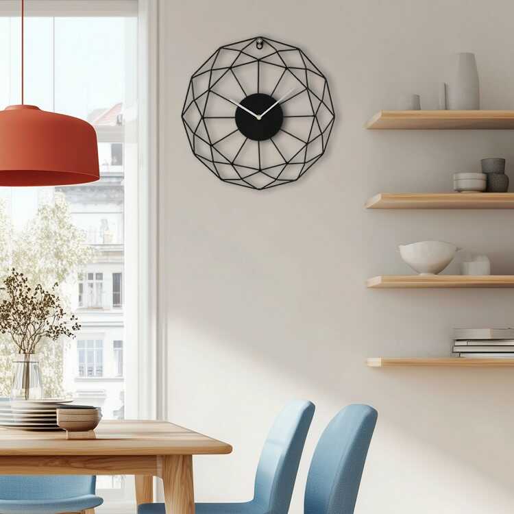文字盤のインデックスを省き、黒のアイアンのみで芸術的な雰囲気を演出する壁掛け時計。