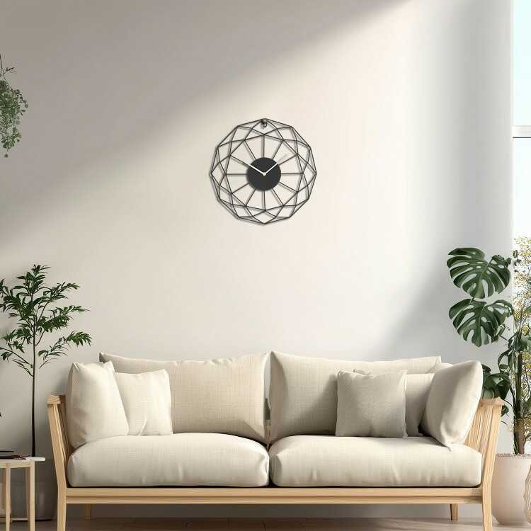 黒の幾何学模様モダンアート壁掛け時計(静かな連続秒針)