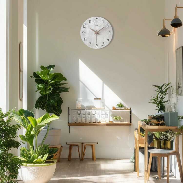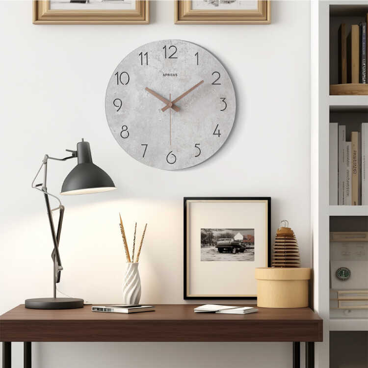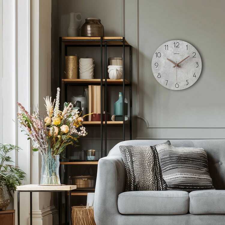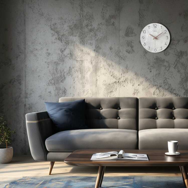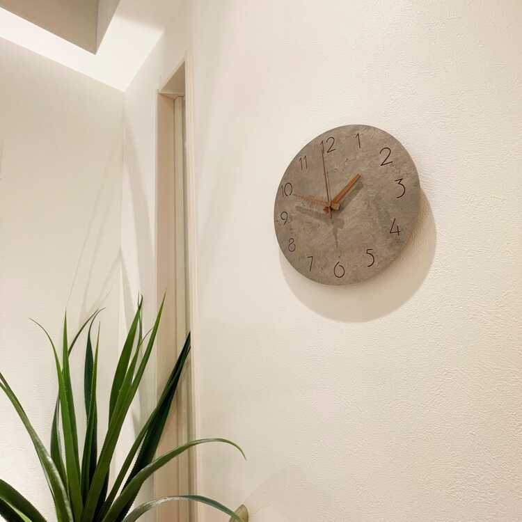 コンクリート調のスタイリッシュな壁掛け時計(グレー系・静かな連続秒針)