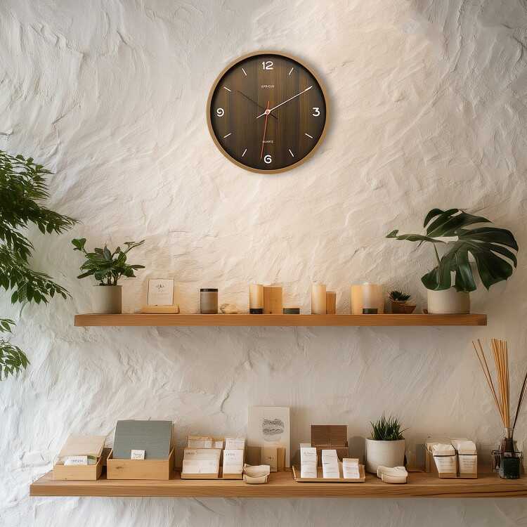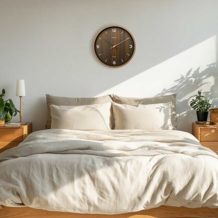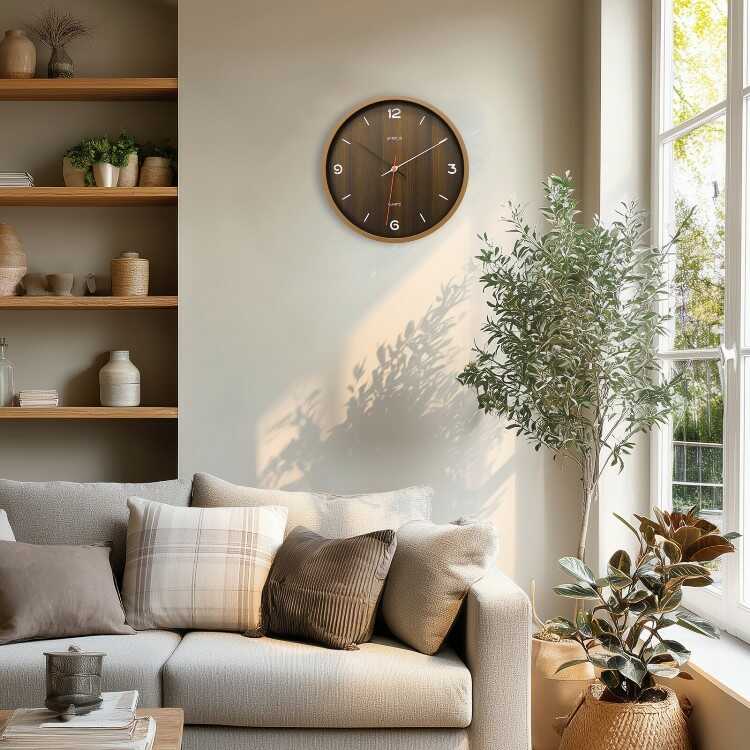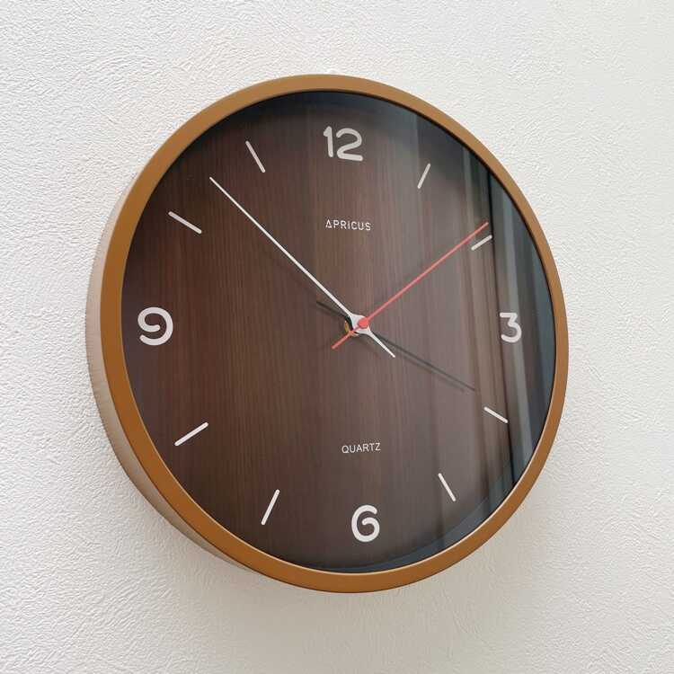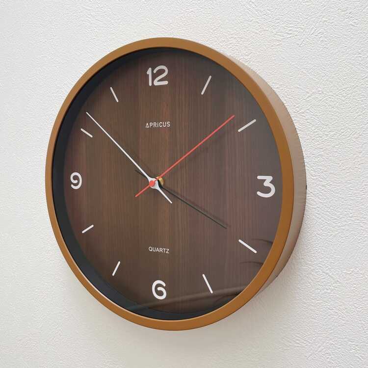 シンプルで見やすい木目ブラウン壁掛け時計(静かなスイープムーブメント)