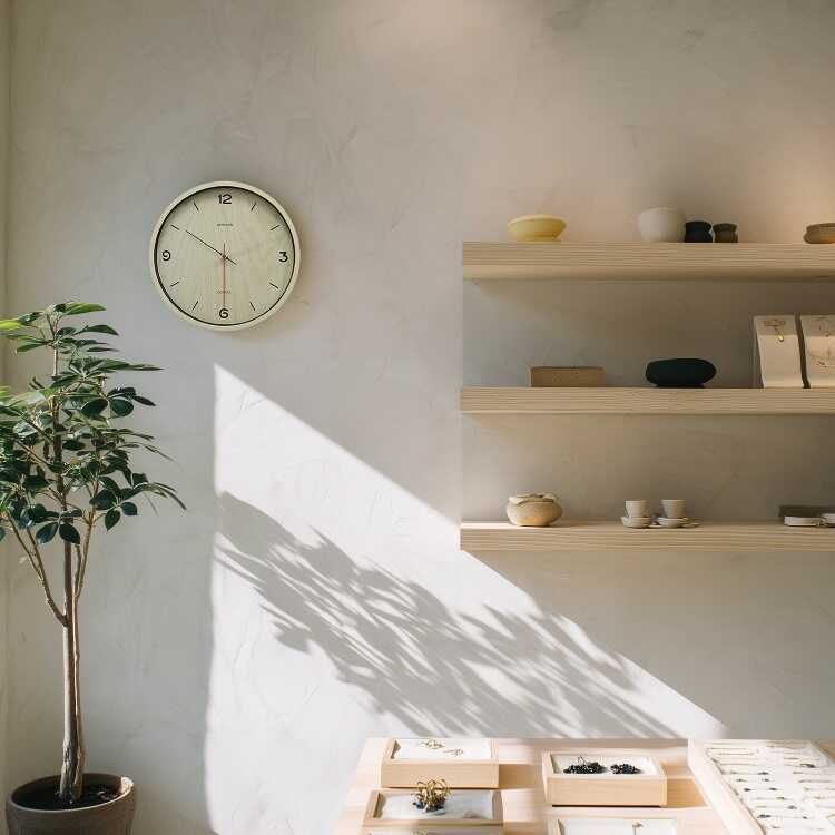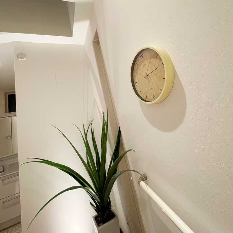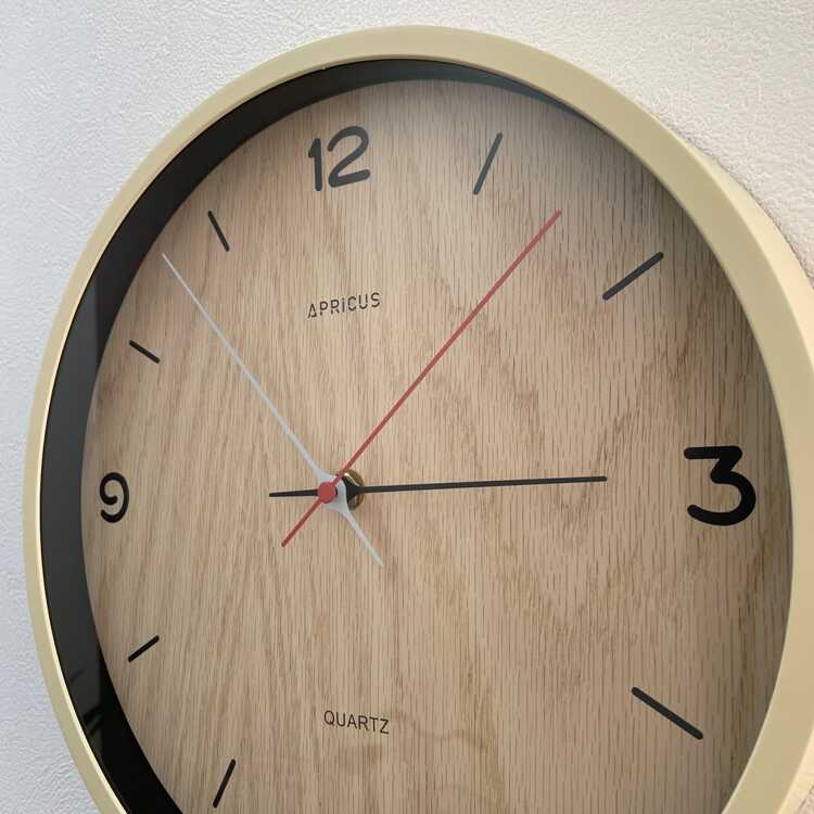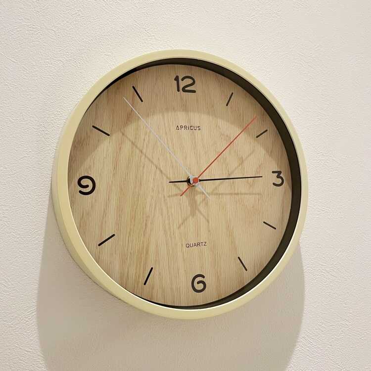 白木っぽい淡いカラーの壁掛け時計