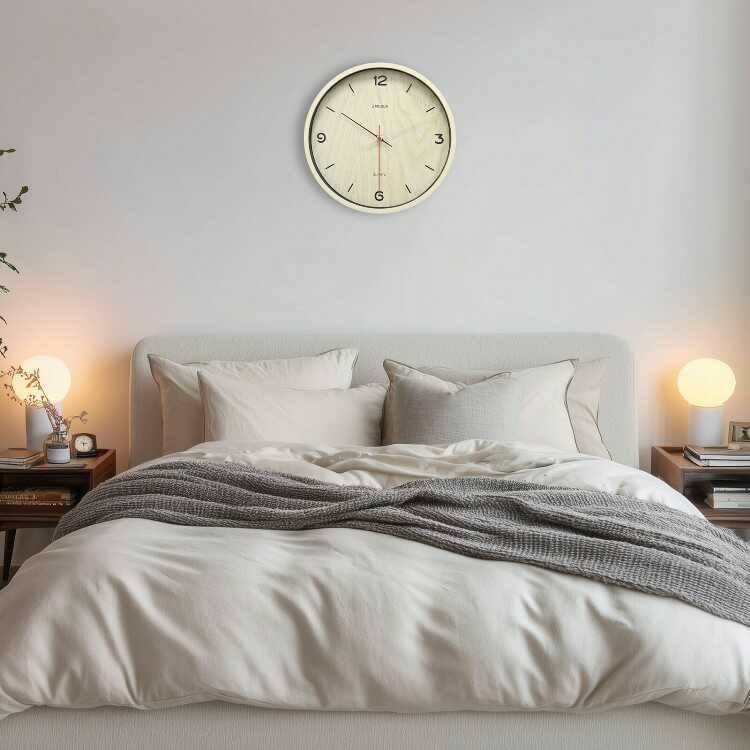 シンプルで見やすい白木っぽい木目の壁掛け時計(静かなスイープムーブメント)