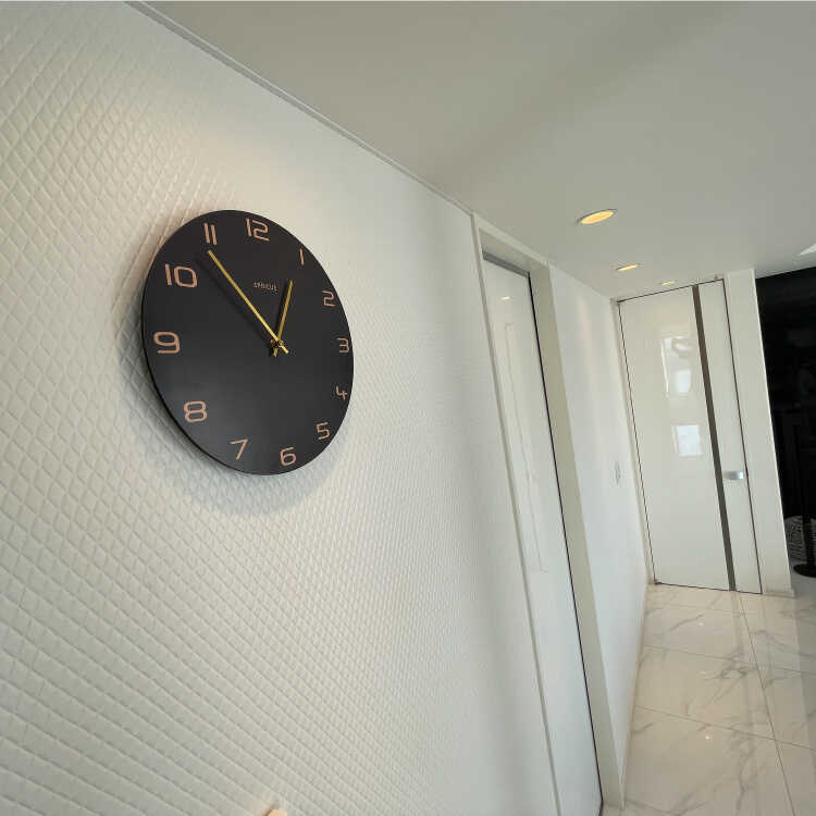 数字の色と針の色が若干異なるので、遠目からでも現在の時刻がハッキリとわかる視認性の高い実用的なウォールクロックです。