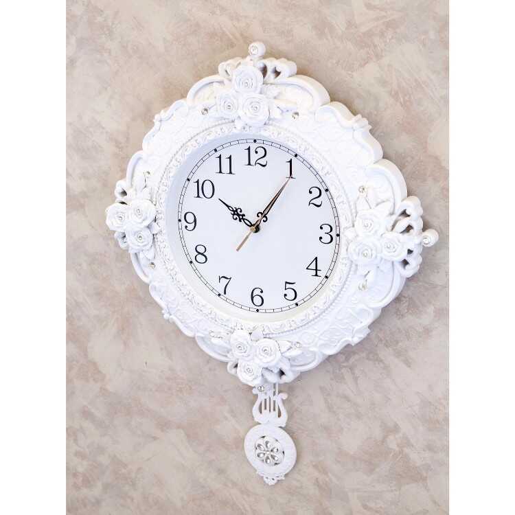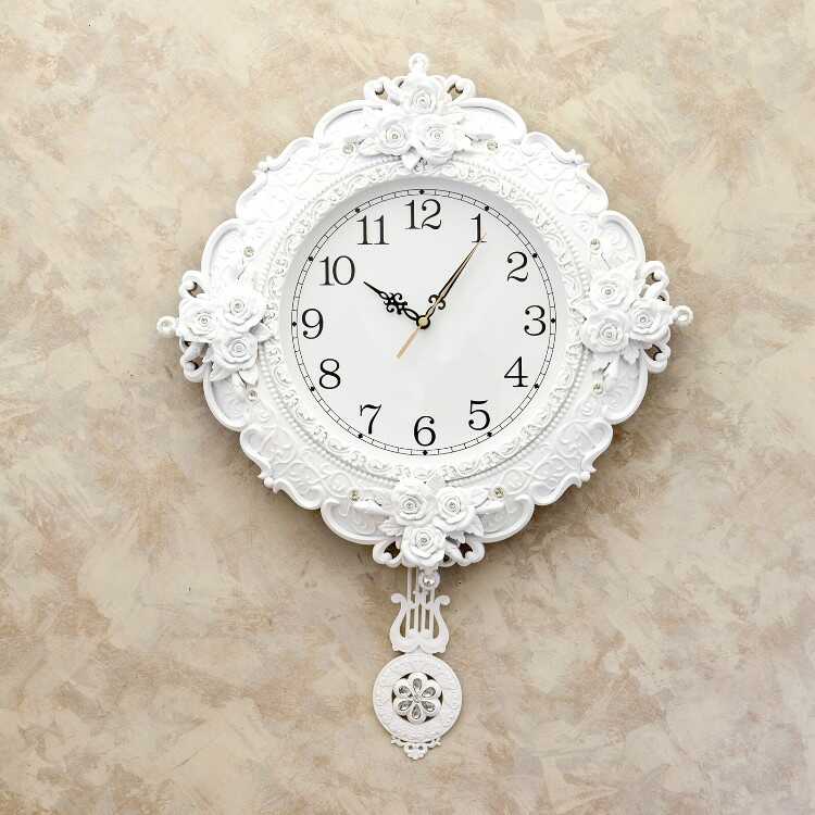 白薔薇デザインのヨーロピアン壁掛け振り子時計(音なしスイープムーブメント)