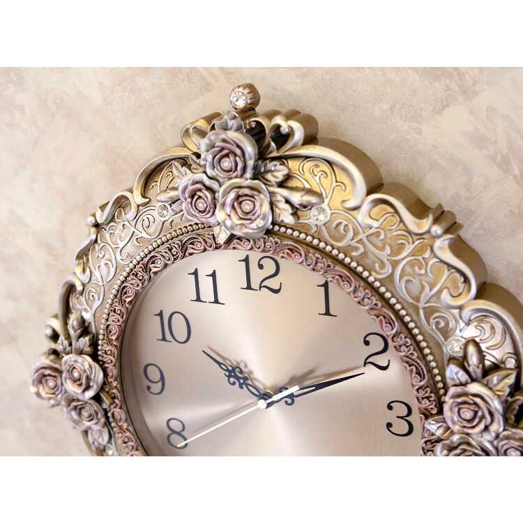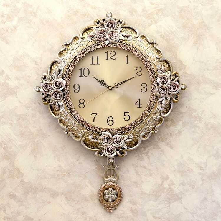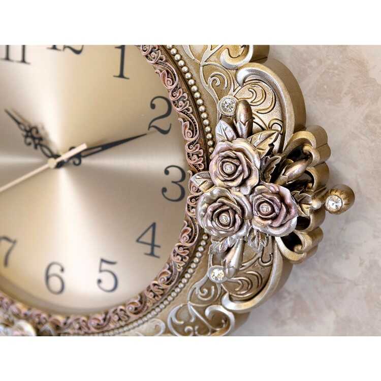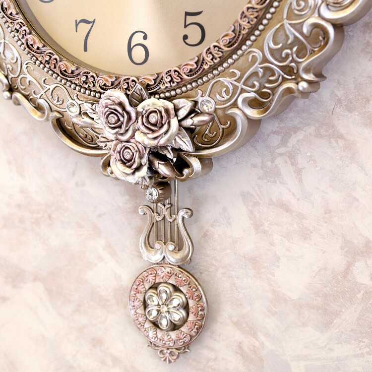 薔薇デザインのヨーロピアン壁掛け振り子時計(ブロンズゴールド・音なしスイープムーブメント)