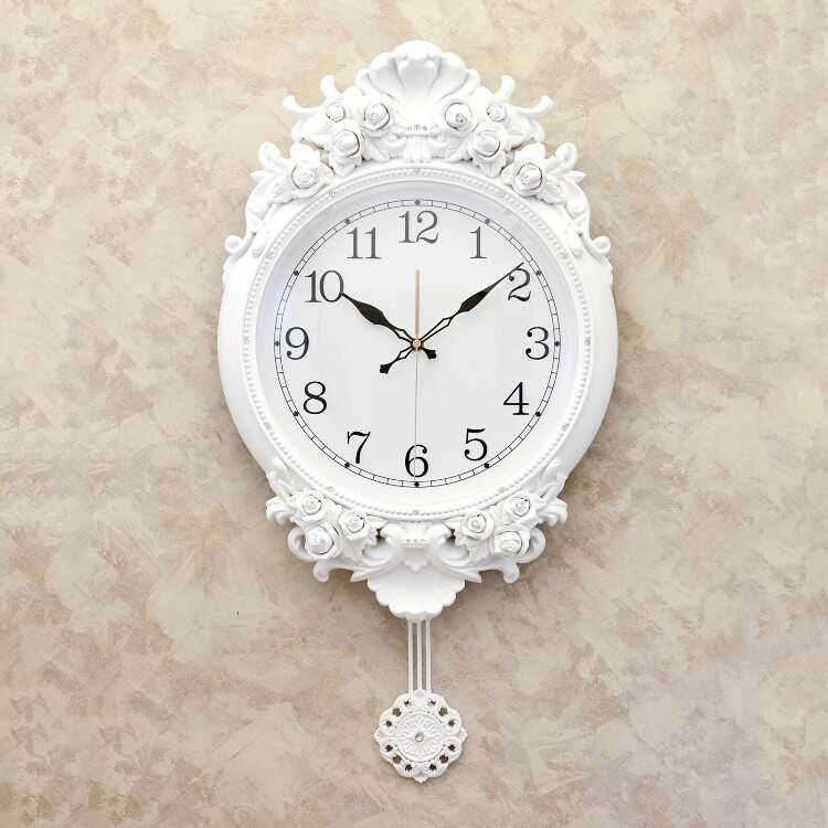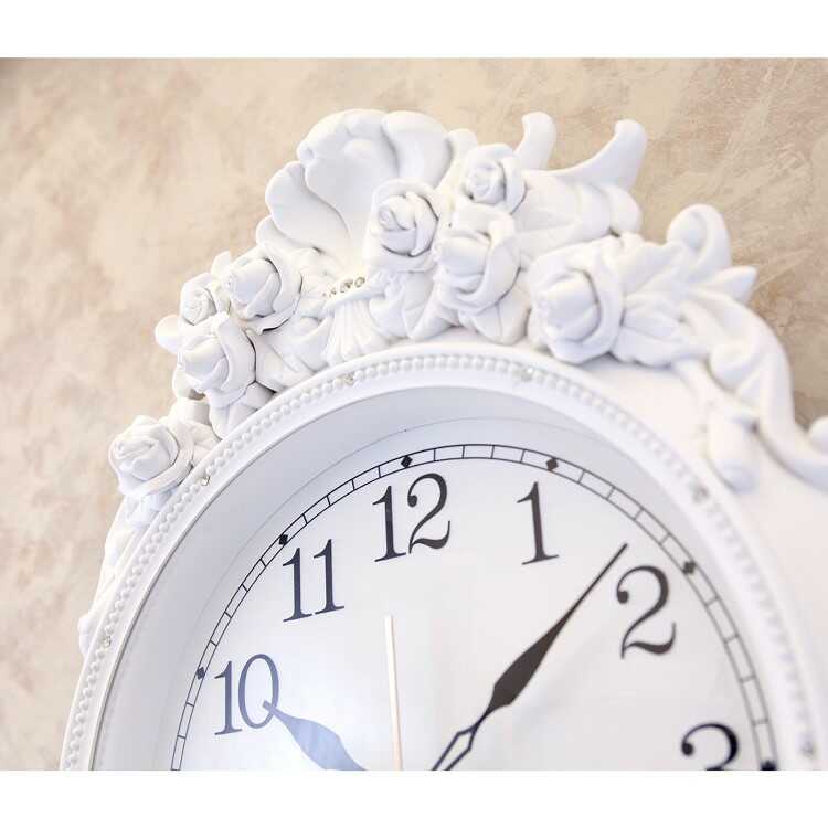 大きいサイズの白薔薇デザインのビクトリアン壁掛け振り子時計(音なしスイープムーブメント)
