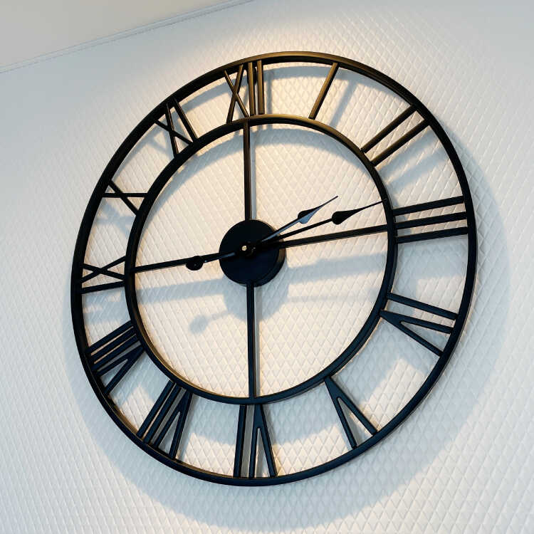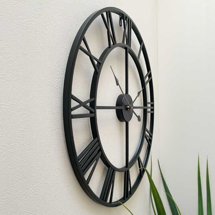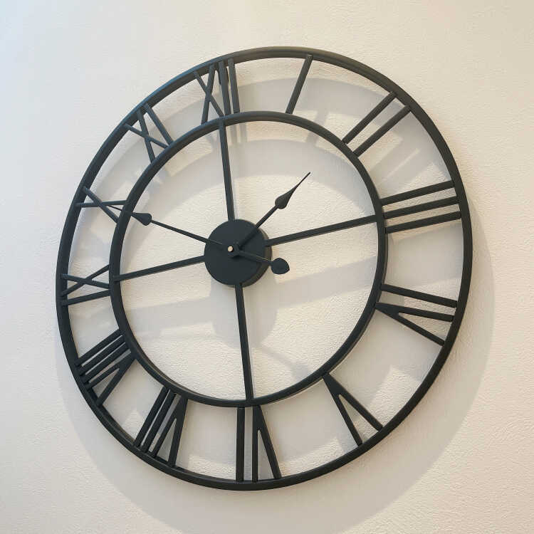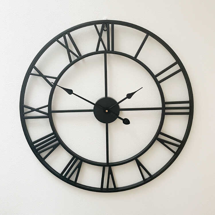 超大きいサイズのアイアン製フレームの壁掛け時計(リビングや玄関におすすめ)
