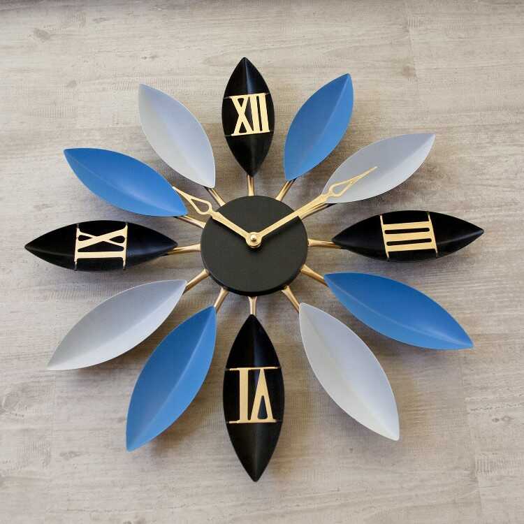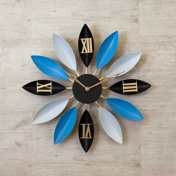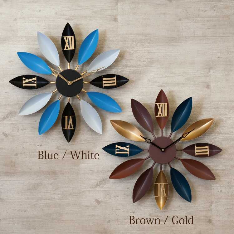 大迫力サイズ!葉っぱリーフデザインのモダンウォールクロック(青ブルー色)