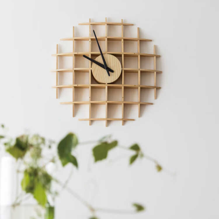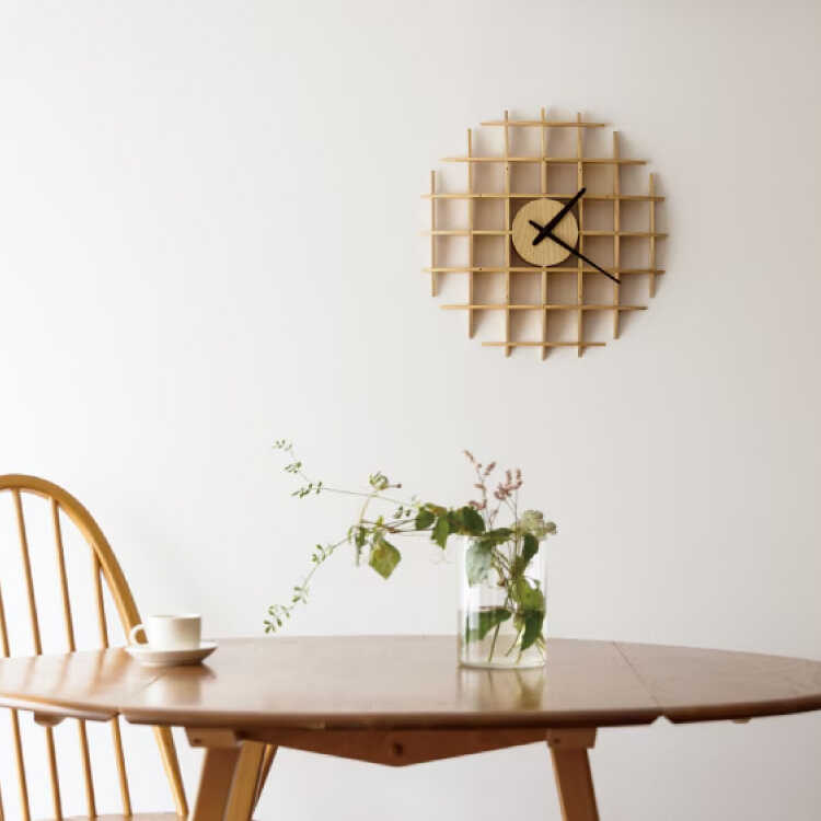 サイズ 幅44cm、高さ44cm、奥行5cm 材質 天然木アッシュ材 仕様補足 スイープムーブメント