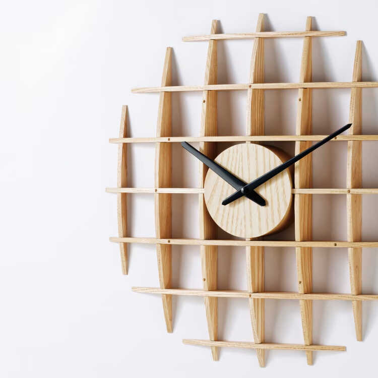 天然木アッシュ製の高級壁掛け時計(静かなスイープムーブメント)