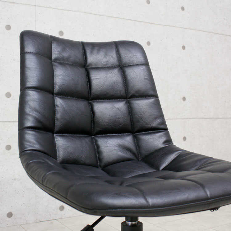 ワッフルのようなもこもこ感が魅力のPUレザー製黒デスクチェア。