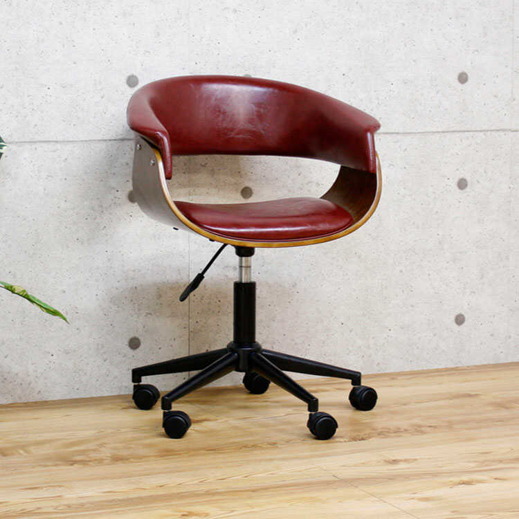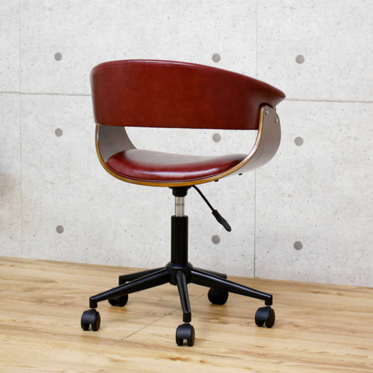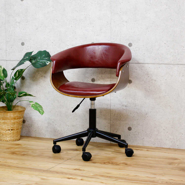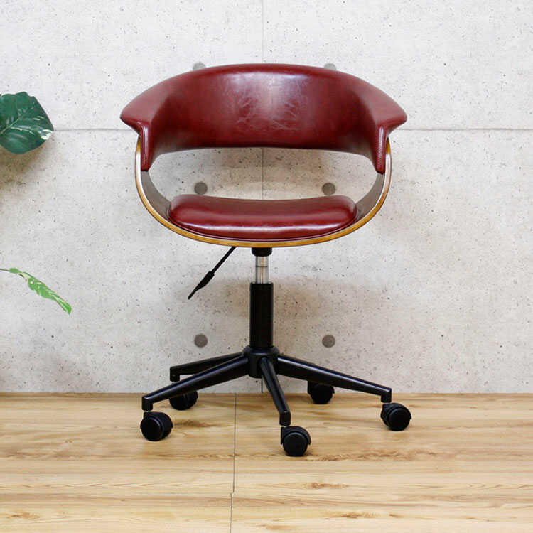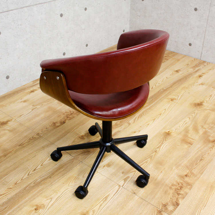 重厚感のあるワイン色のデスクチェアは、レトロやミッドセンチュリー・アンティークなどのテイストにもマッチします。