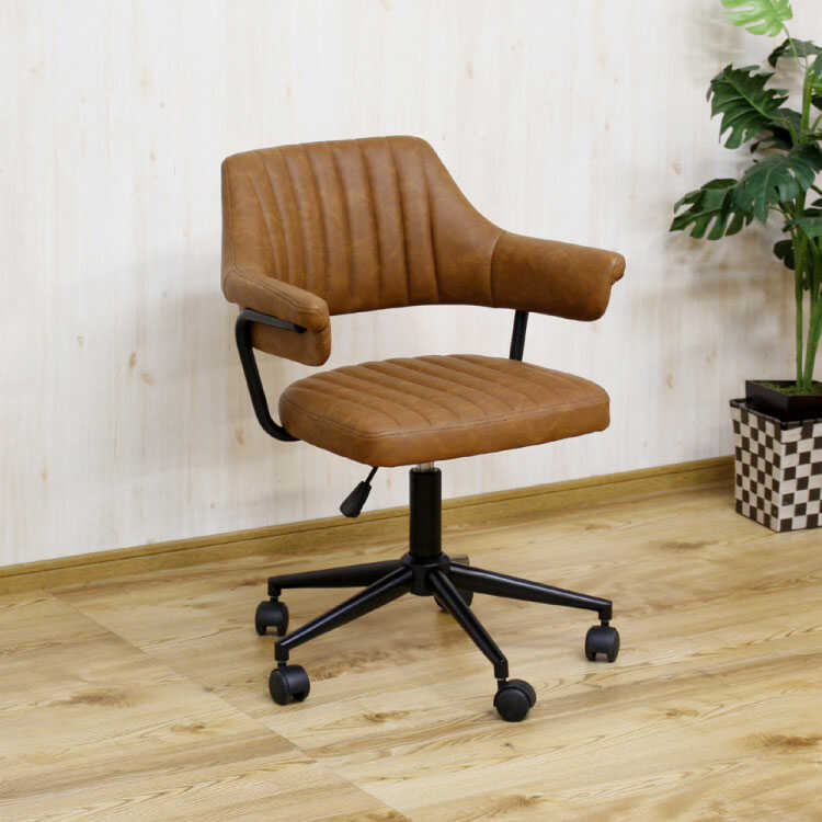 味わい深いライトブラウンのデスクチェアは、レトロやヴィンテージ・ミッドセンチュリーなど高級感のあるお部屋作りにぴったりです。