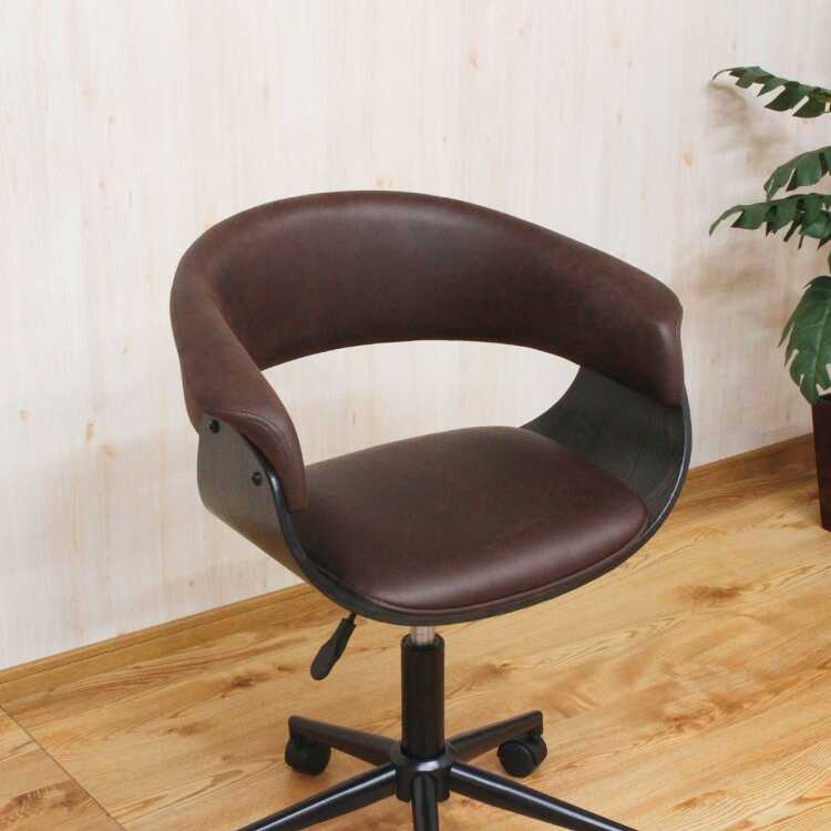 ダークブラウン・丸くて可愛い上にキズに強いパソコンチェアー