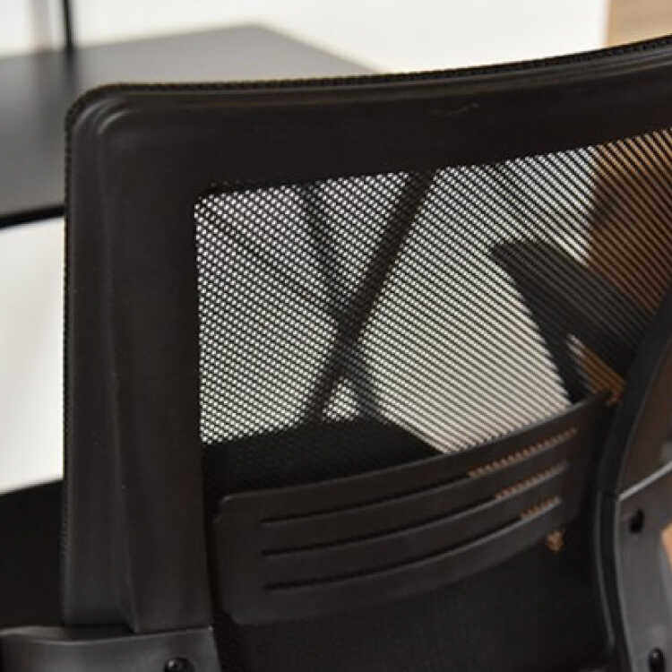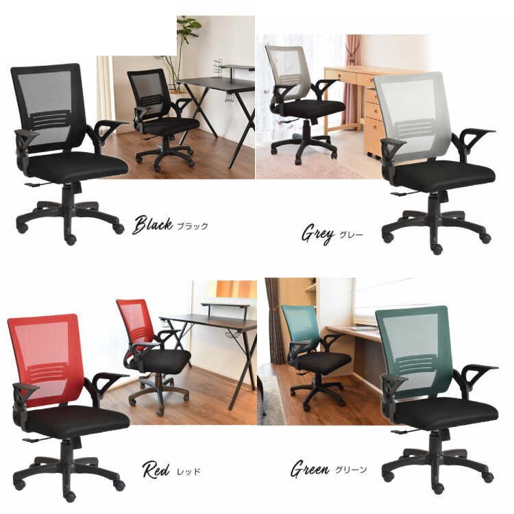 背もたれ&座面のメッシュ素材、天板に干渉しない肘置きが跳ね上げ式、ロッキング機能、360度回転、昇降機能にはガス圧式を採用など、過剰な機能を除いて必要な機能に絞り、ロープライスを実現。