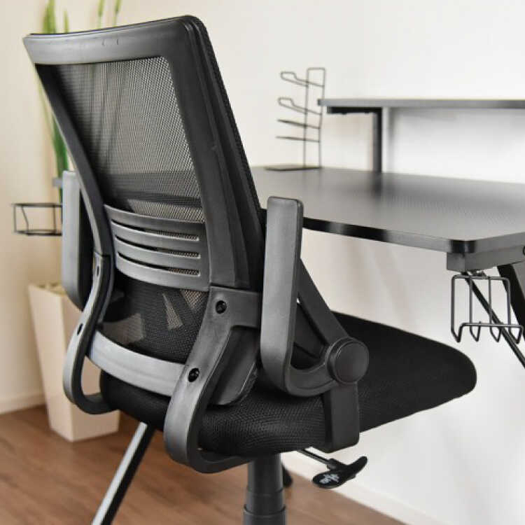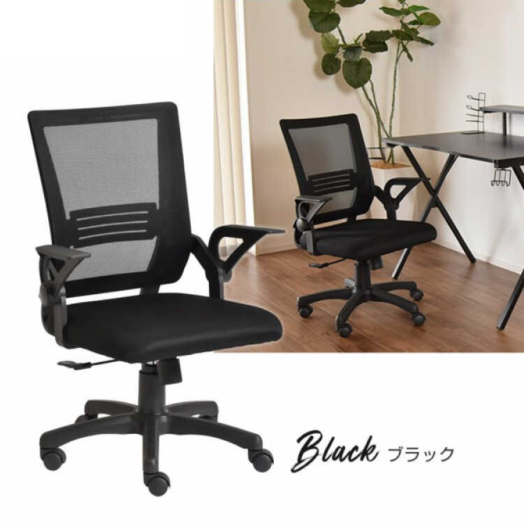 メッシュ製ホームオフィスチェア(黒ブラック・肘置き跳ね上げ式)