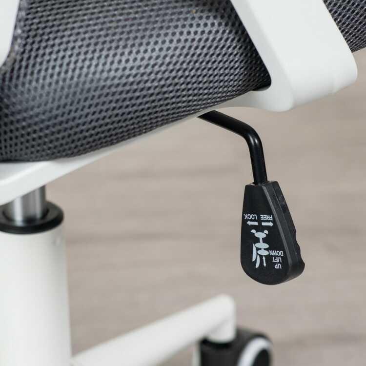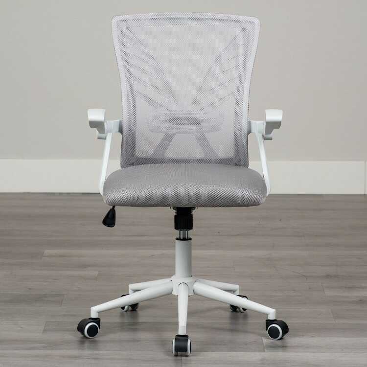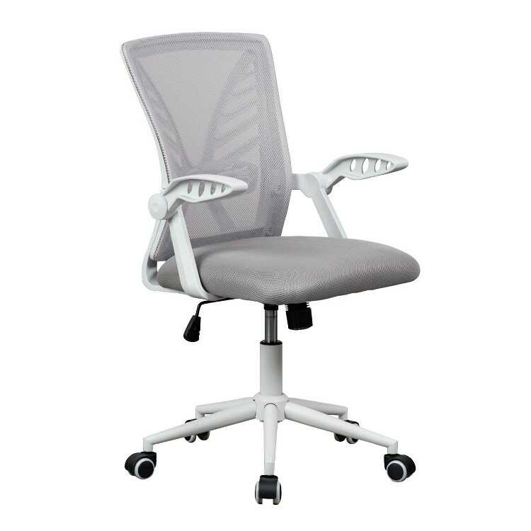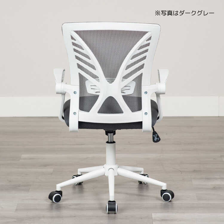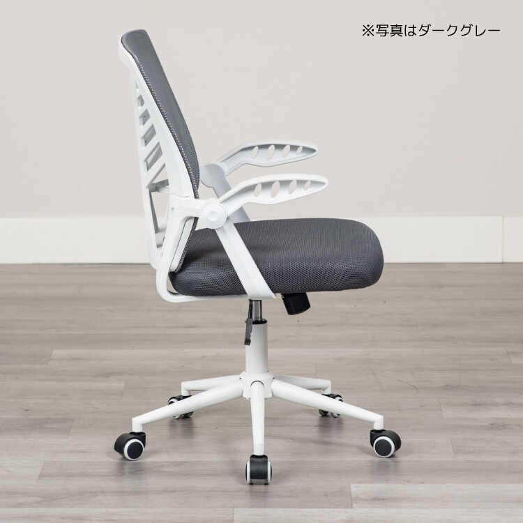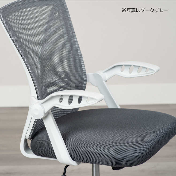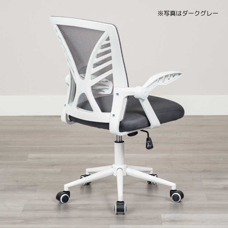 ランバーサポート付き・白&グレーのパソコンチェア(ライトグレー色・メッシュ生地・肘置き可動)
