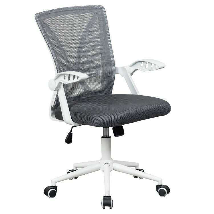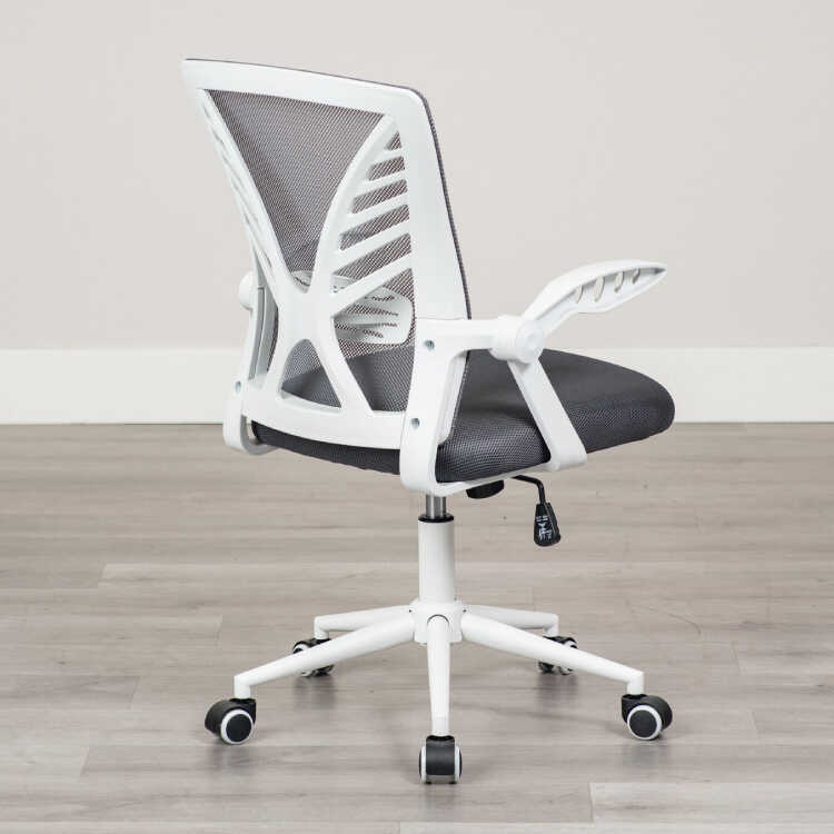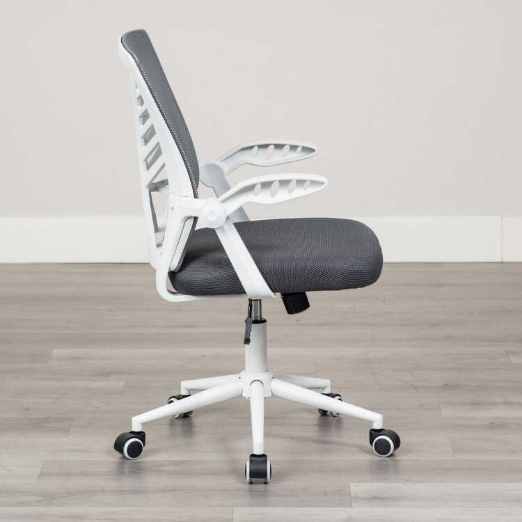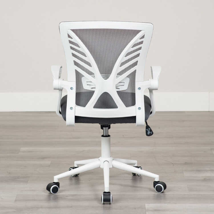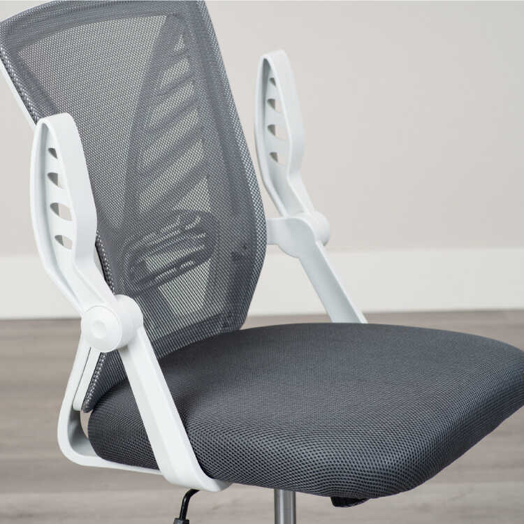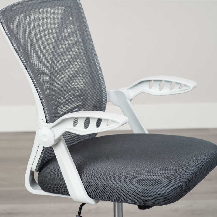 ランバーサポート付き・白&グレーのホームオフィスチェア(ダークグレー色・メッシュ生地・肘置き可動)