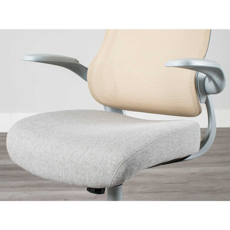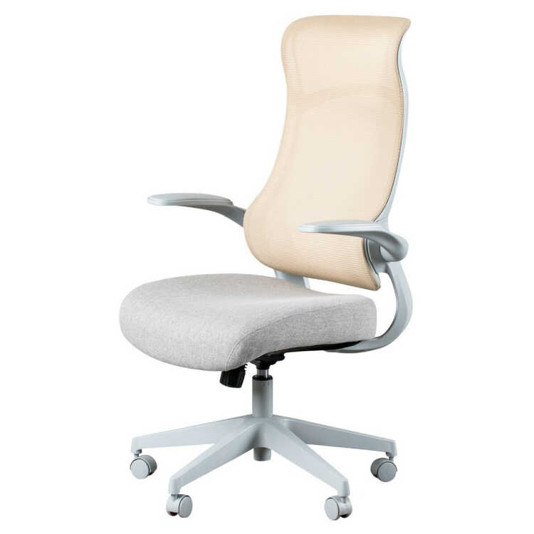 メッシュ製ハイバックパソコンチェア(肘跳ね上げ式・アイボリー)