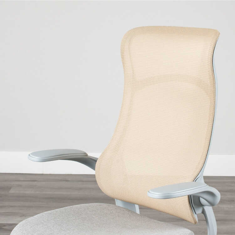 背もたれはメッシュ素材で通気性に優れ、一年を通して快適にお使いいただけます。