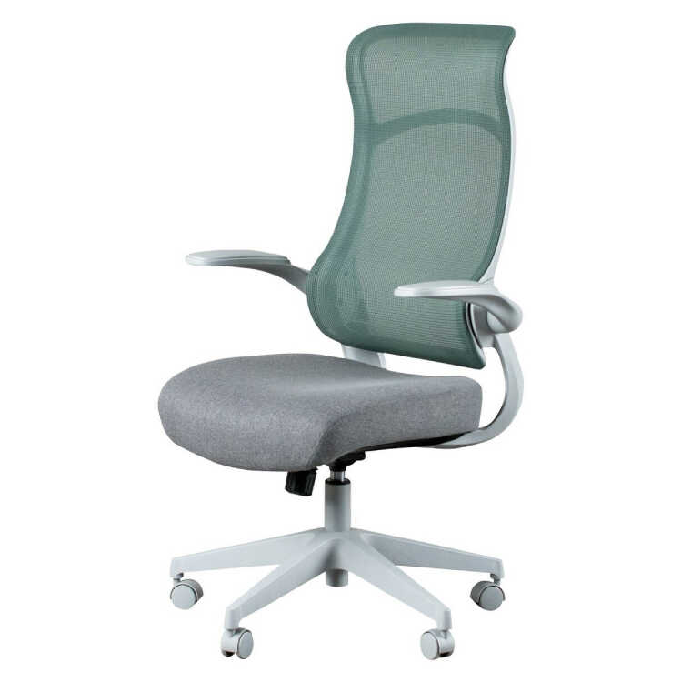 メッシュ製ハイバックオフィスチェア(肘跳ね上げ式・グリーン)