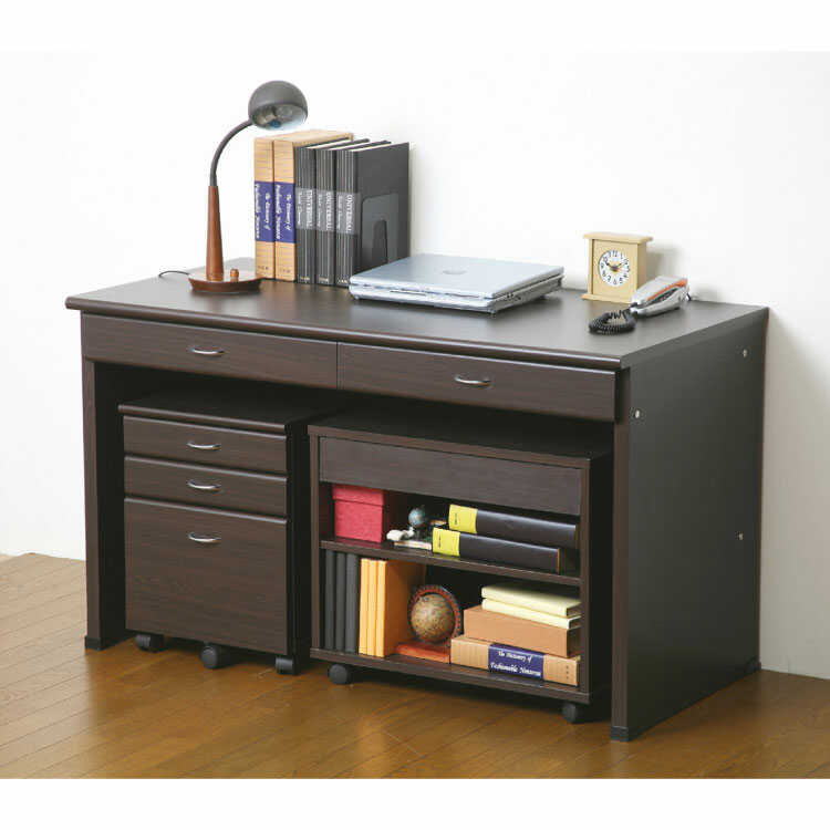 DE-2009 幅120cm・PCデスク3点セット(プリンターラック&サイドチェスト付き/ブラウン色)